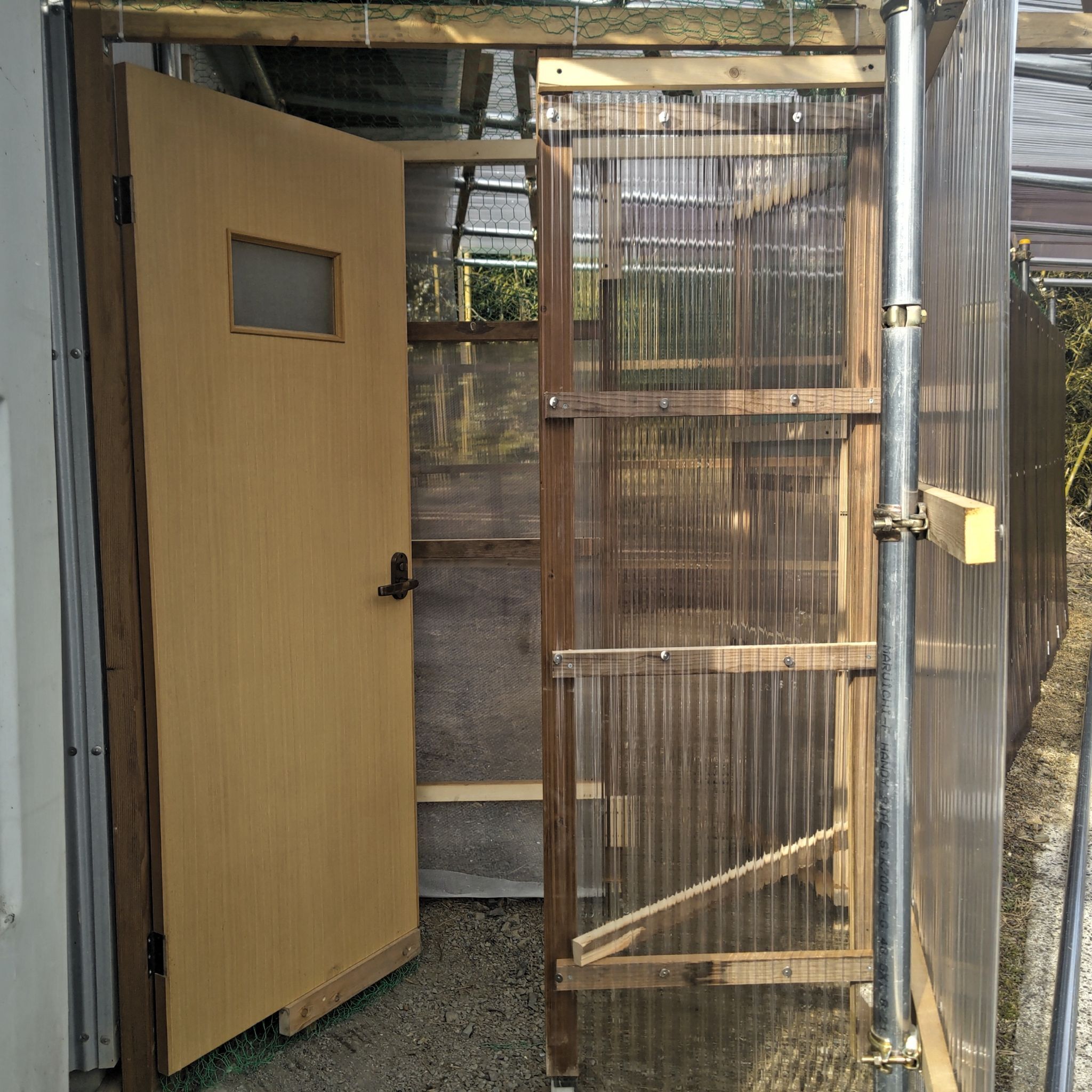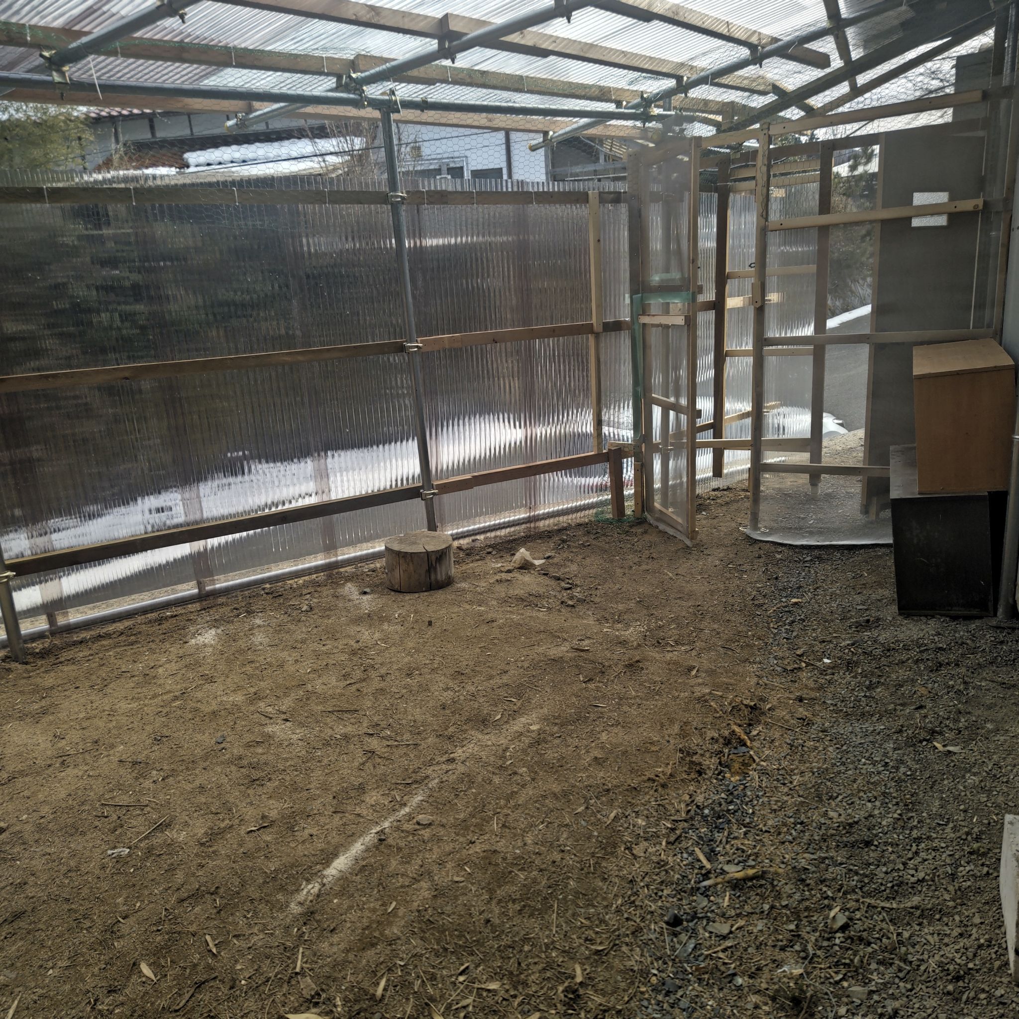 よくわかる様に、壁も屋根もクリアな波板で囲いました。