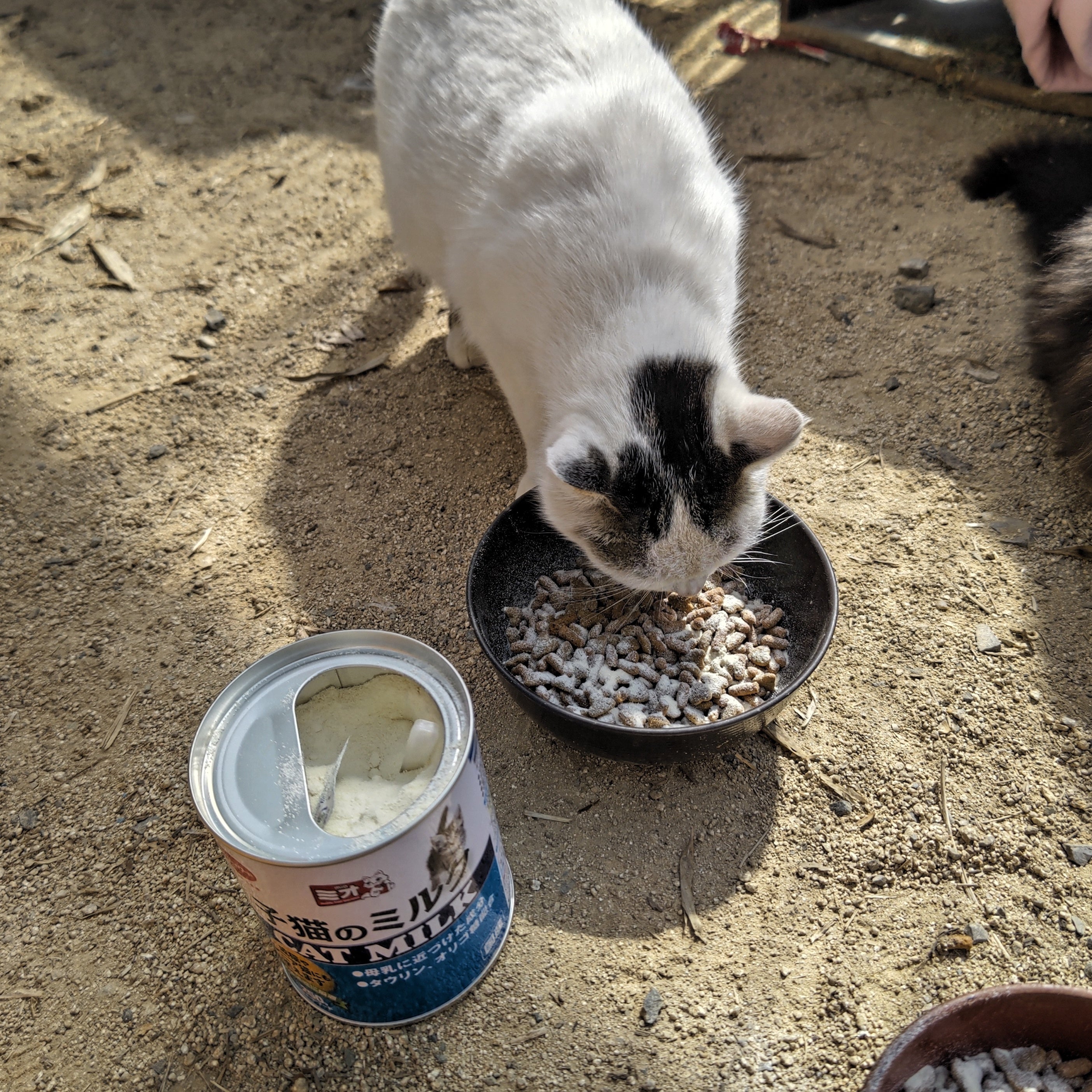 粉ミルクをカリカリにふりかけたご飯を準備したら、半径1メートルの距離まで近寄ってくれました\(^o^)/(でも人がいると食事してくれませんけどね…)
