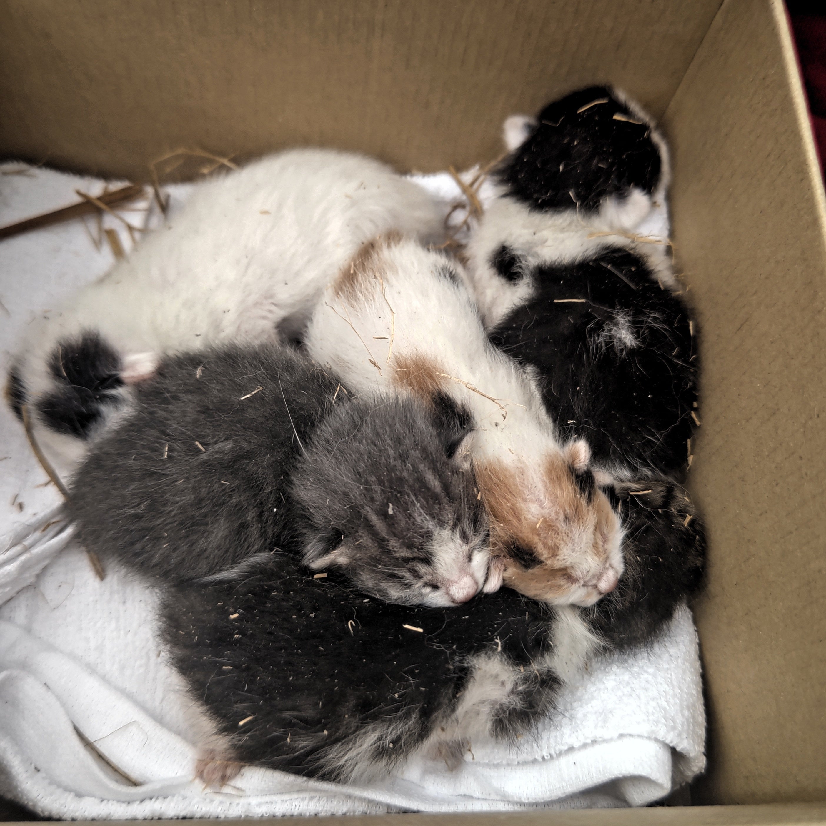 今回、パンちゃんは5匹の仔猫ちゃんを出産しました。仔猫達は愛護センターの許可を得たので、これから里親探しを始めます。生後半年までに里親様とのご縁がなかった仔猫が残った場合は、近隣住民と自治会長に了承を貰い、地域猫登録をしてから避妊または去勢手術を受けてここでお世話をする事になります。