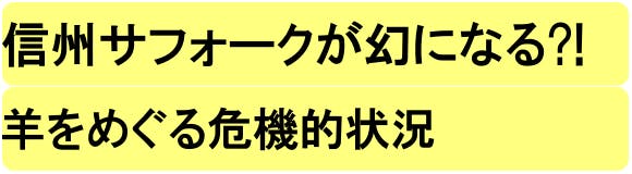 この信州新町名物のサフォークが幻の羊肉になってしまうかもしれません。それは、農家さんの高齢化により畜産事業を引き継ぐ人が減少し、それにともない羊の数も減り続けているからです。昭和初期から続いてきた信州新町の羊肉事業がいよいよ終わってしまうという危機的状況にあります。