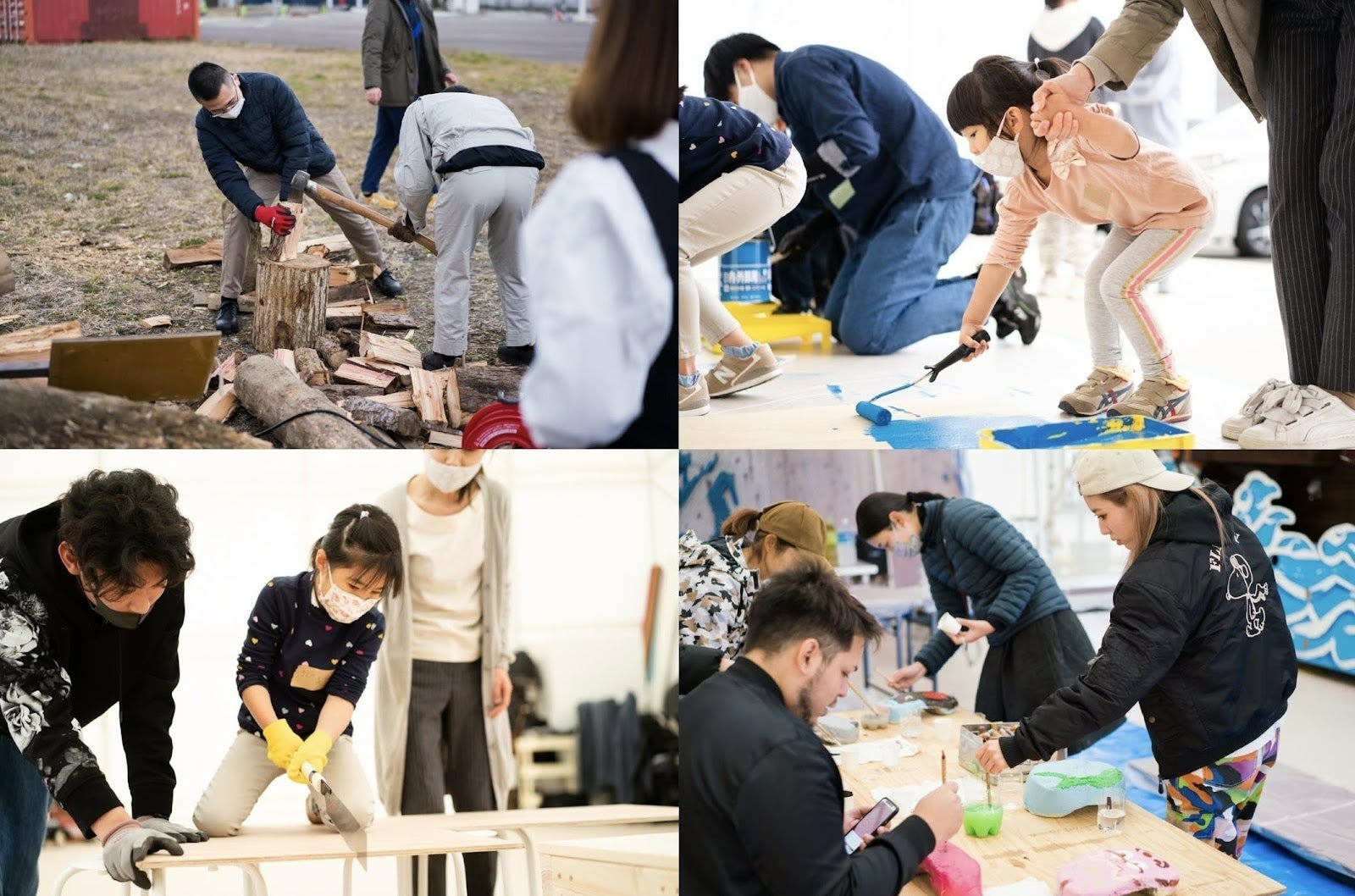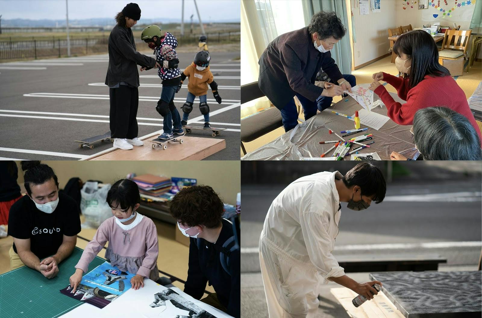 例えば、花や木やハーブなどをみんなで植えたり、アーティストと一緒にモニュメントをつくったり、建物の壁に色を塗ったり絵を描いたり、焚火ピットや外用のテーブルと椅子をDIYしたり、みんなで交流しながら体を動かしてみんなの拠点をつくっていきます。