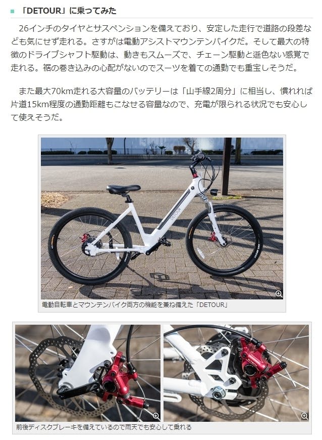 実際にDETOURディーツアーに乗ったときの感想も紹介されています。