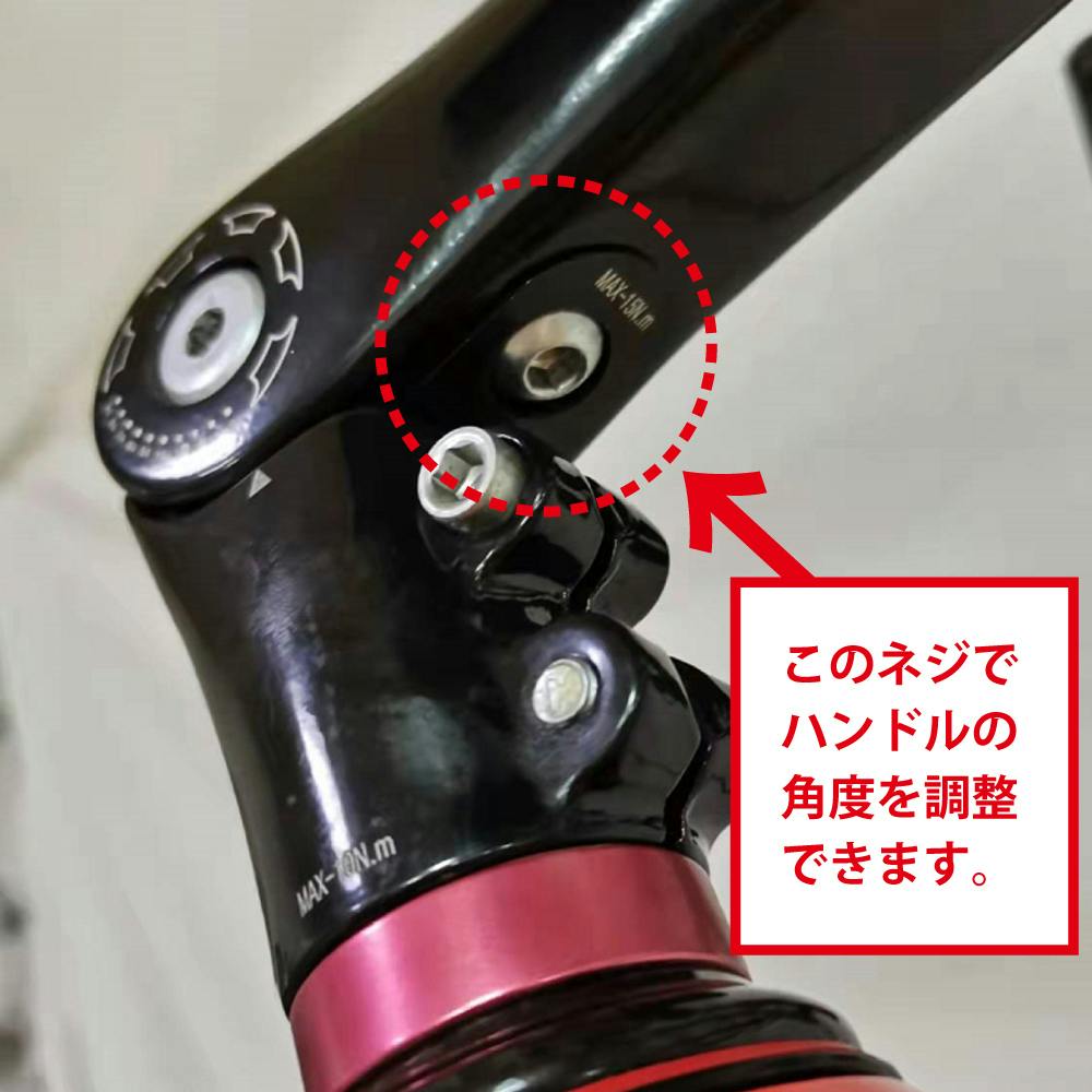 ハンドル中央裏側のネジ穴部分を六角レンチで調整することで、ハンドルの角度をお好みに応じて変更いただけます!