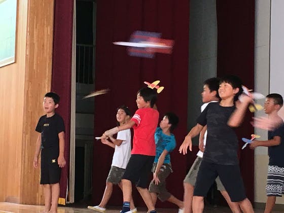 難しい調整なしで飛ぶ「手投げ室内飛行機」を、ワークショップで、作って飛ばします。