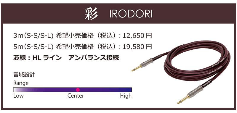 8.量産1号品 KR'Z-ND CABLE【彩】IRODORI 5m、プラグS-S/S-Lご支援金15,400円 (21%OFF)