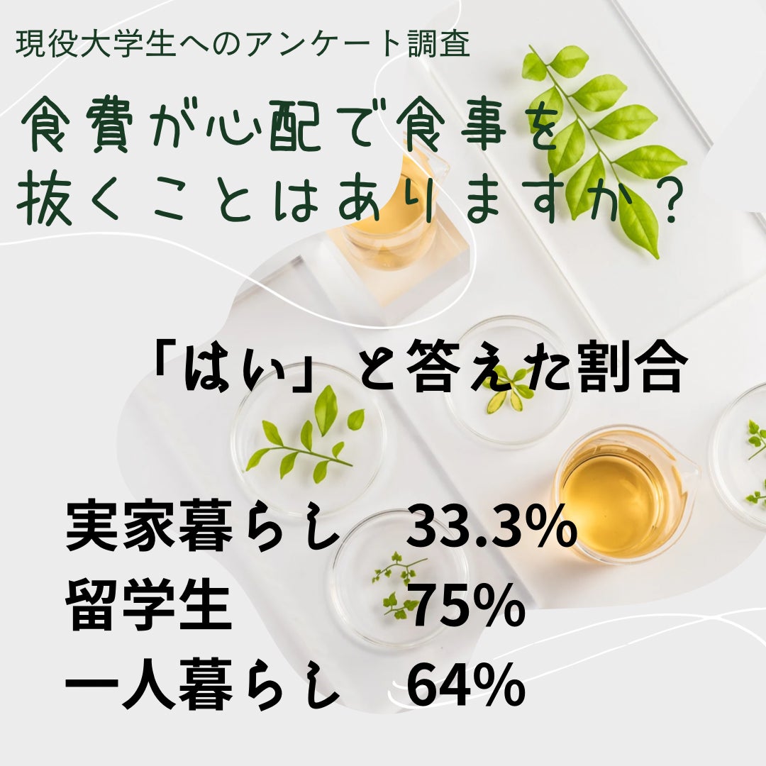 画像ご覧頂いて分かる通り、食費のために食事を抜く大学生がたくさんいらっしゃるとのこと。
