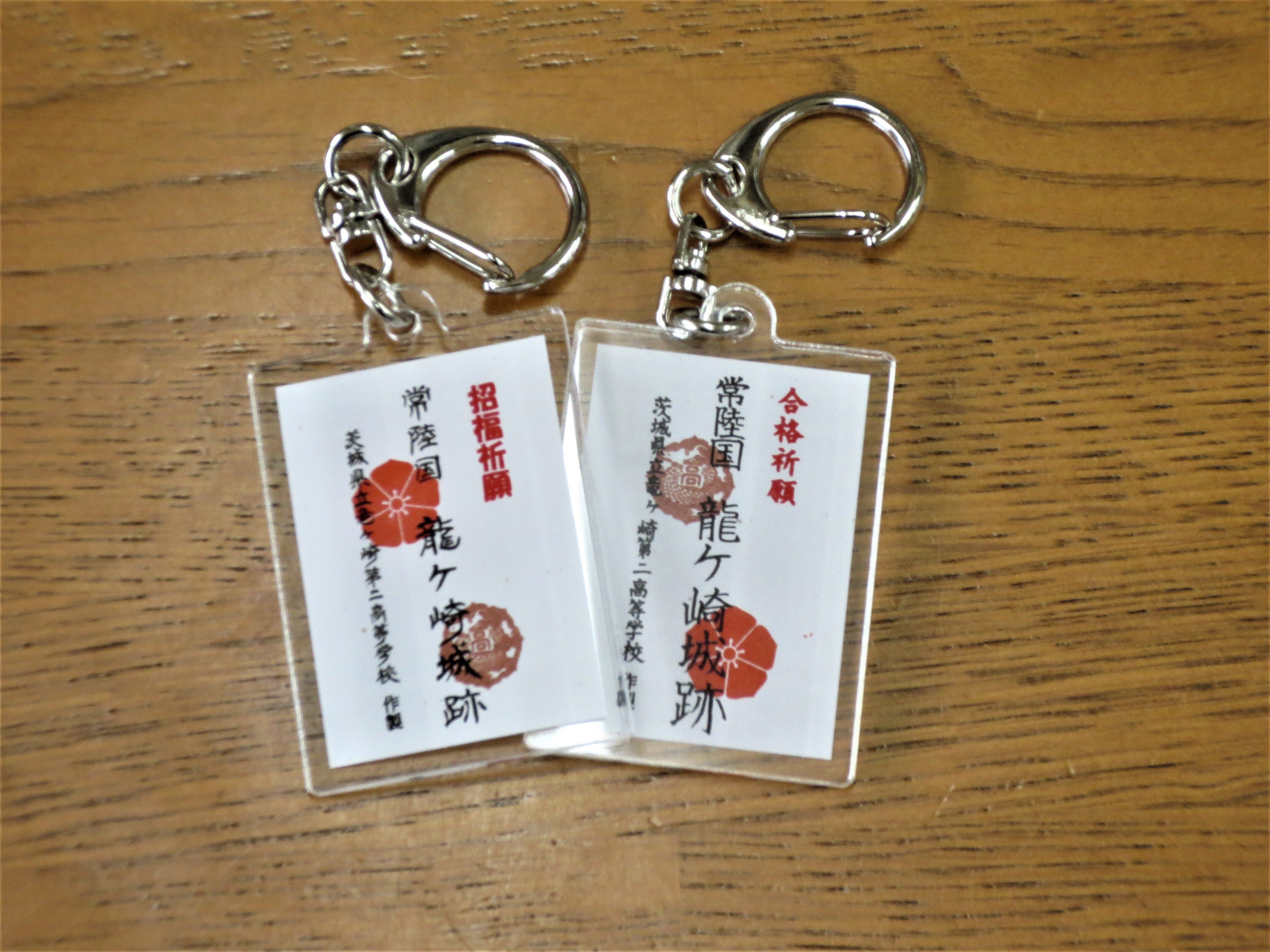 受験、試験に向けた 御城印のお守りを作成しました。②の【合格祈願】と③の【招福祈願】の2種類から選べます!!「御城印」を書き、イラストを描いたのは合格した生徒です。ちなみに、スタンプを押したのも合格した生徒。 贈り物や自分用に用途に合わせてお使いください。キーホルダー仕様になります。大きさは約横3㎝縦5㎝です。 ※80個のご用意となります。
