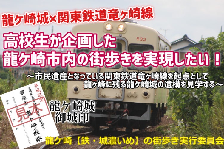 このクラウドファンディングの成功で街歩きが実現し、たくさんの方々に街歩きを楽しんで頂くことで地域や生徒達に愛される「竜鉄」の支援、龍ケ崎城のアピールだけでなく、過疎化してしまった商店街や地元の歴史あるお店の活性化にも繋げたいと考えております。また、今回企画した街歩きプロジェクトは、龍ケ崎城×竜鉄(関東鉄道)ということで、一見マニアックな内容かも知れません。しかし、あくまでも「龍ケ崎」という街をもっとみんなに知ってもらいたい!というのが実は一番の目標でもあり、コンセプトです。参加した皆様に楽しんでいただきながら「龍ケ崎」をたくさんの方々に知って頂き、龍ケ崎市をより活性化したいという願いで活動しております!