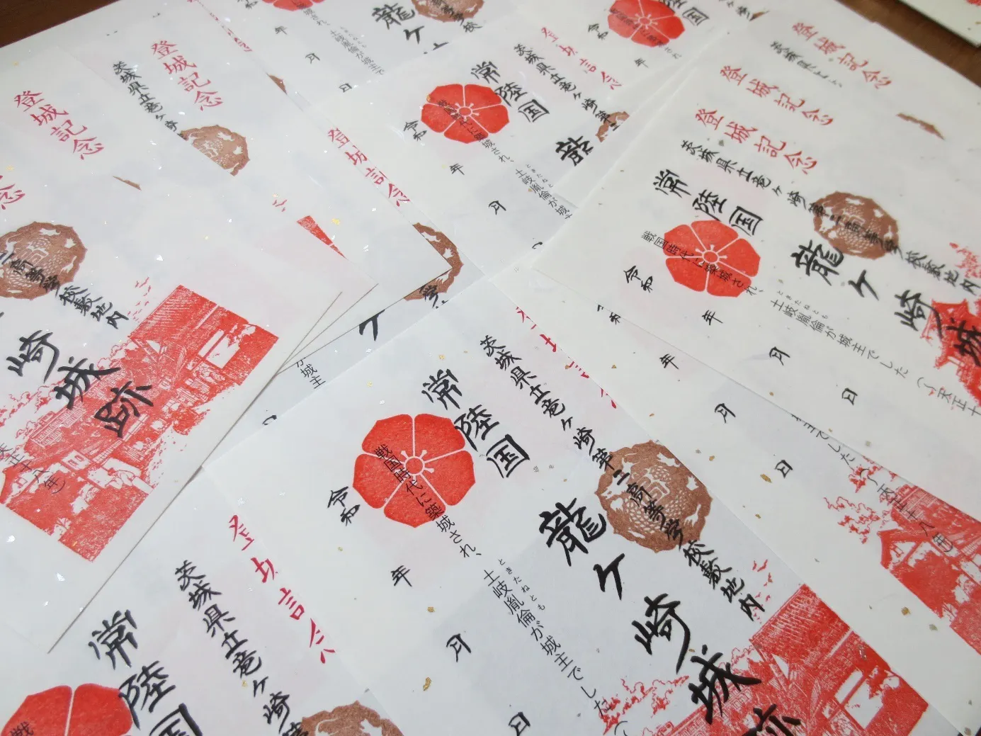 (御城印2枚(スタンプ違い)、龍ケ崎城解説シート、支援カード(ポストカード)1枚)