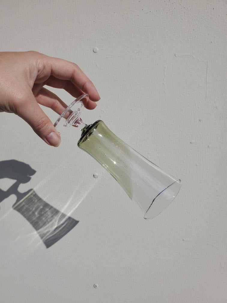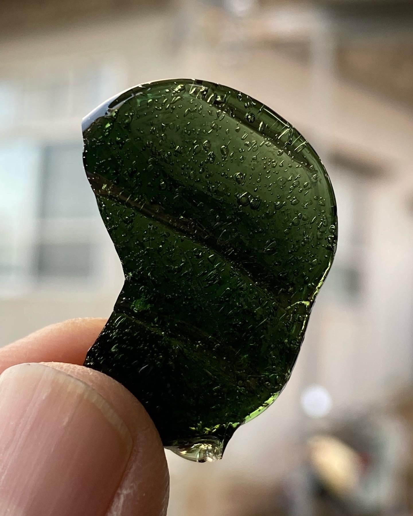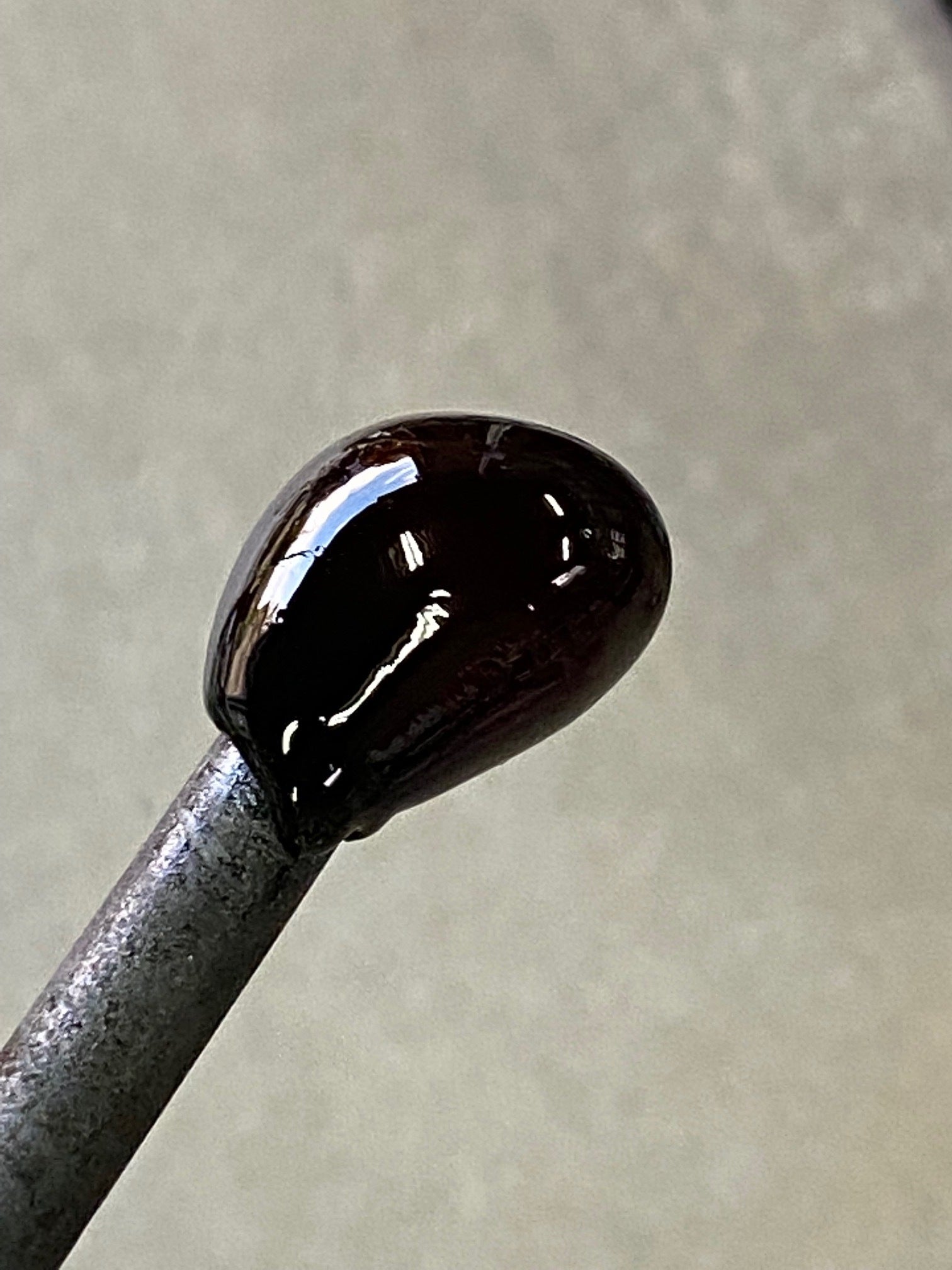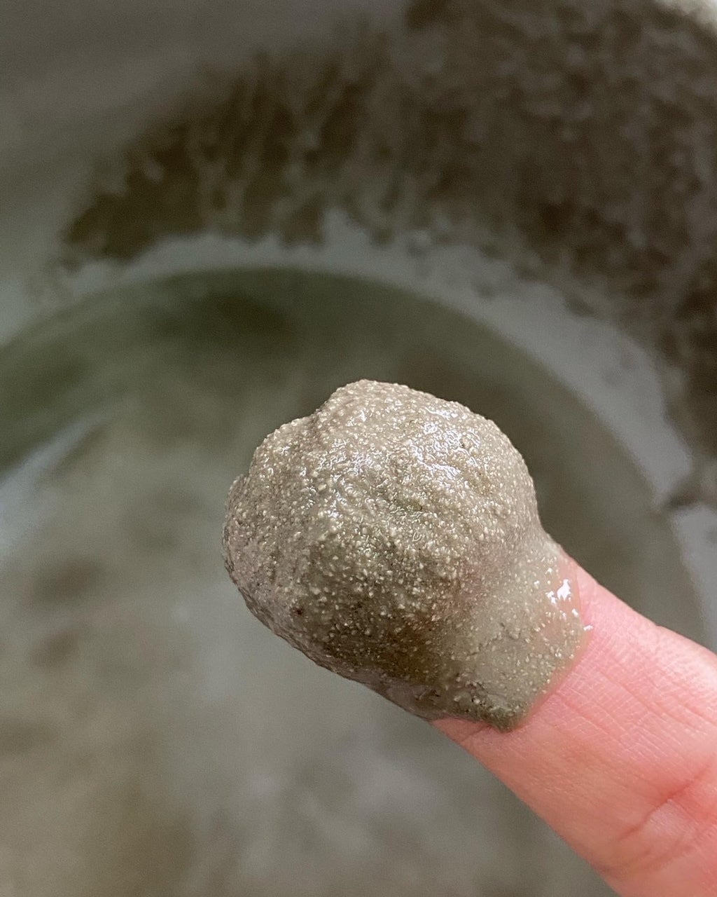 出来上がったガラスの色は深いモスグリーン!まるで海藻のような色です。