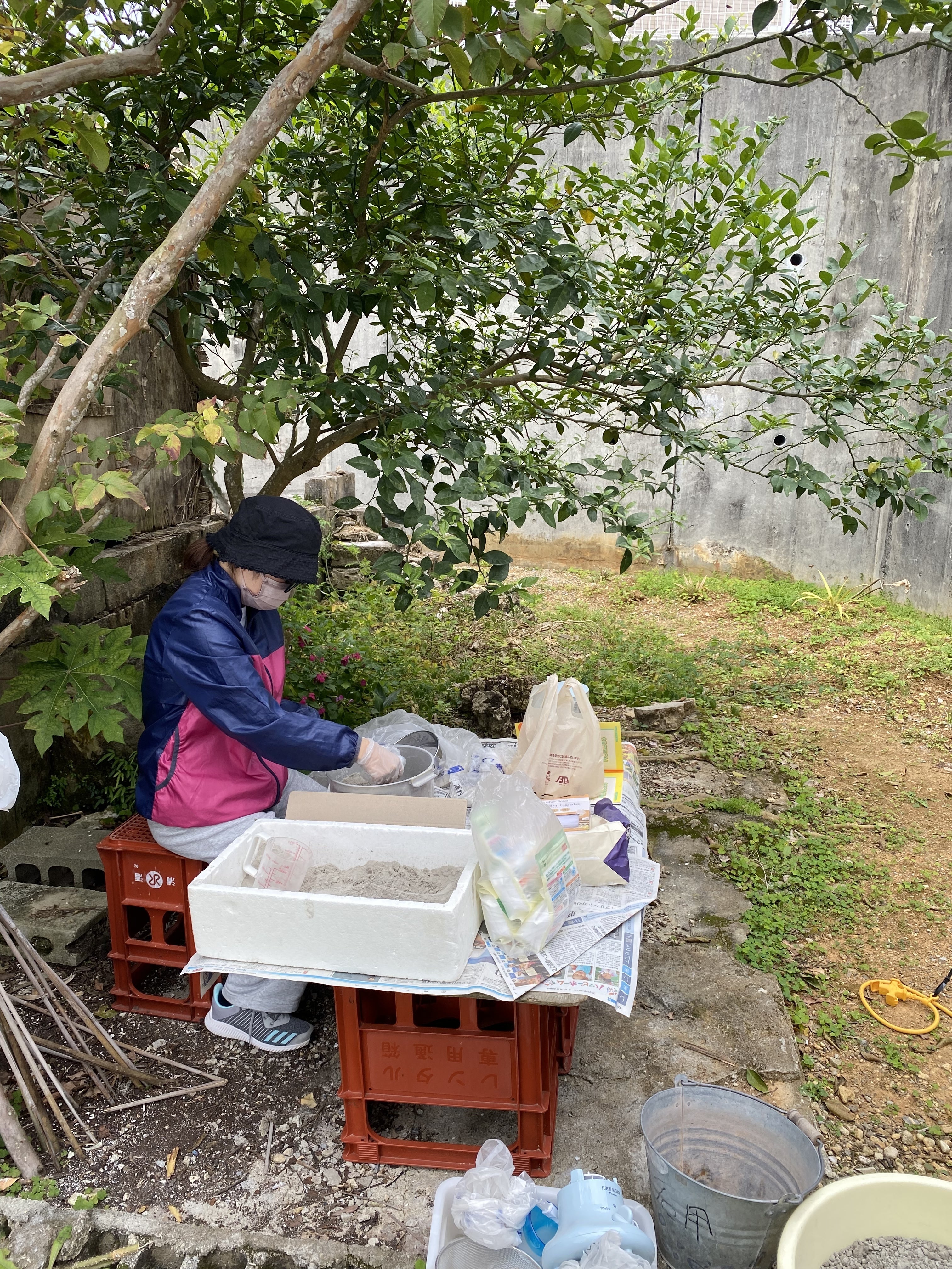 写真は軽石を粉にするアルバイト様です。暑い中大変な作業になります!ありがとう!