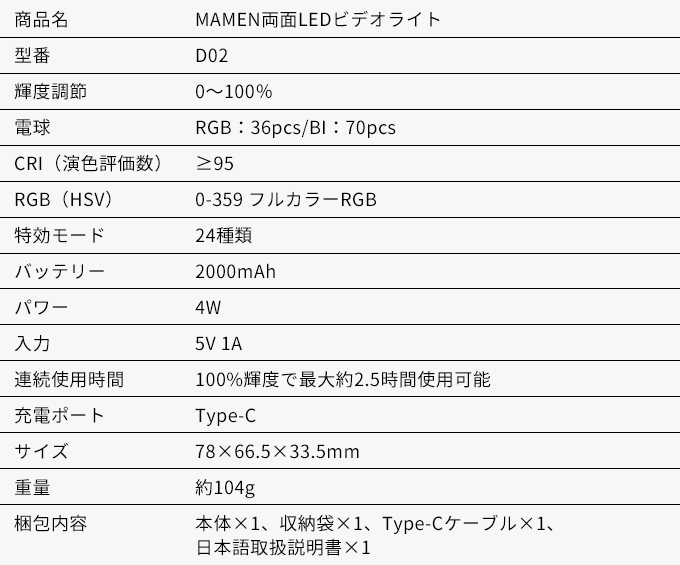 LEDビデオライト「MAMEN(マメン)」主な特徴: