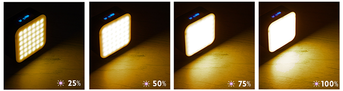 色温度を2500Kから9000Kまで調整できます。また、LEDライトの明るさを0%から100%の間で好きなように調整できます。