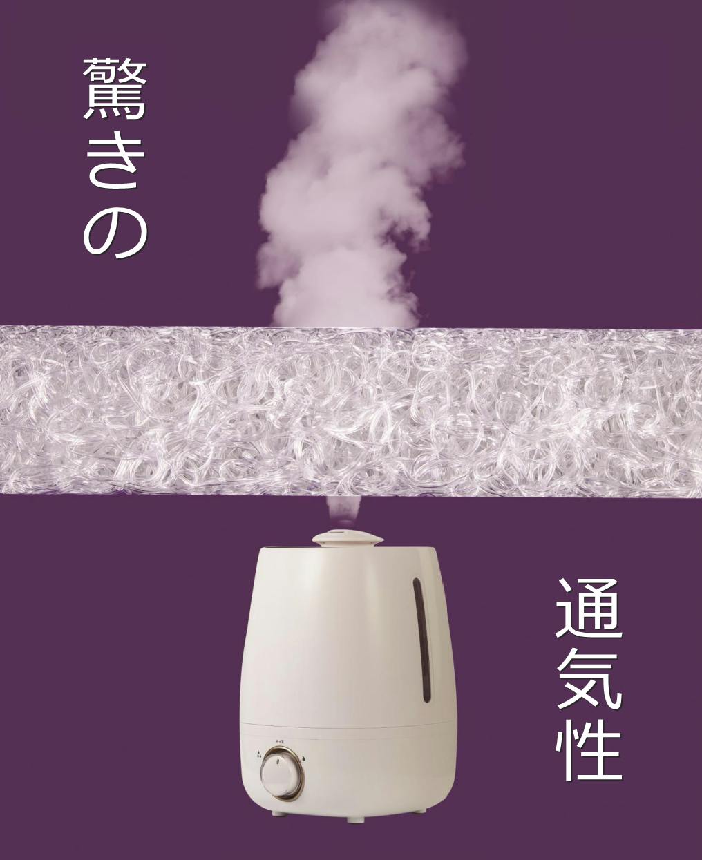 加湿器の煙まですり抜けるほどの驚きの通気性を再現。