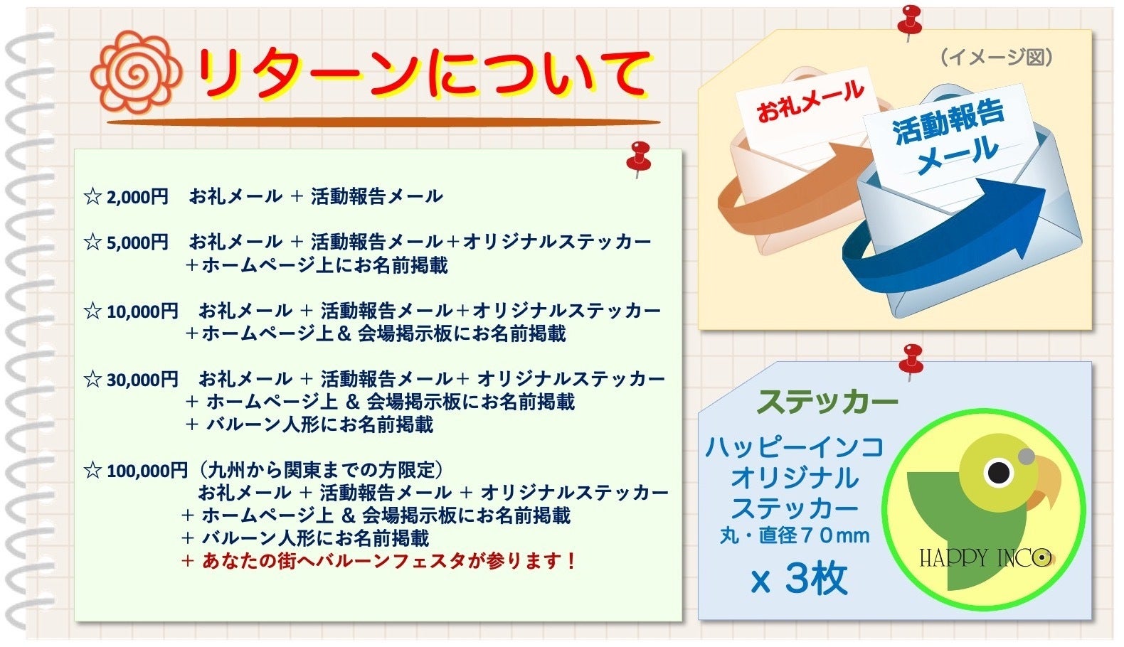 皆様から頂いた支援金は「アニマルバルーン製作費」として、大事に使わせていただきます。