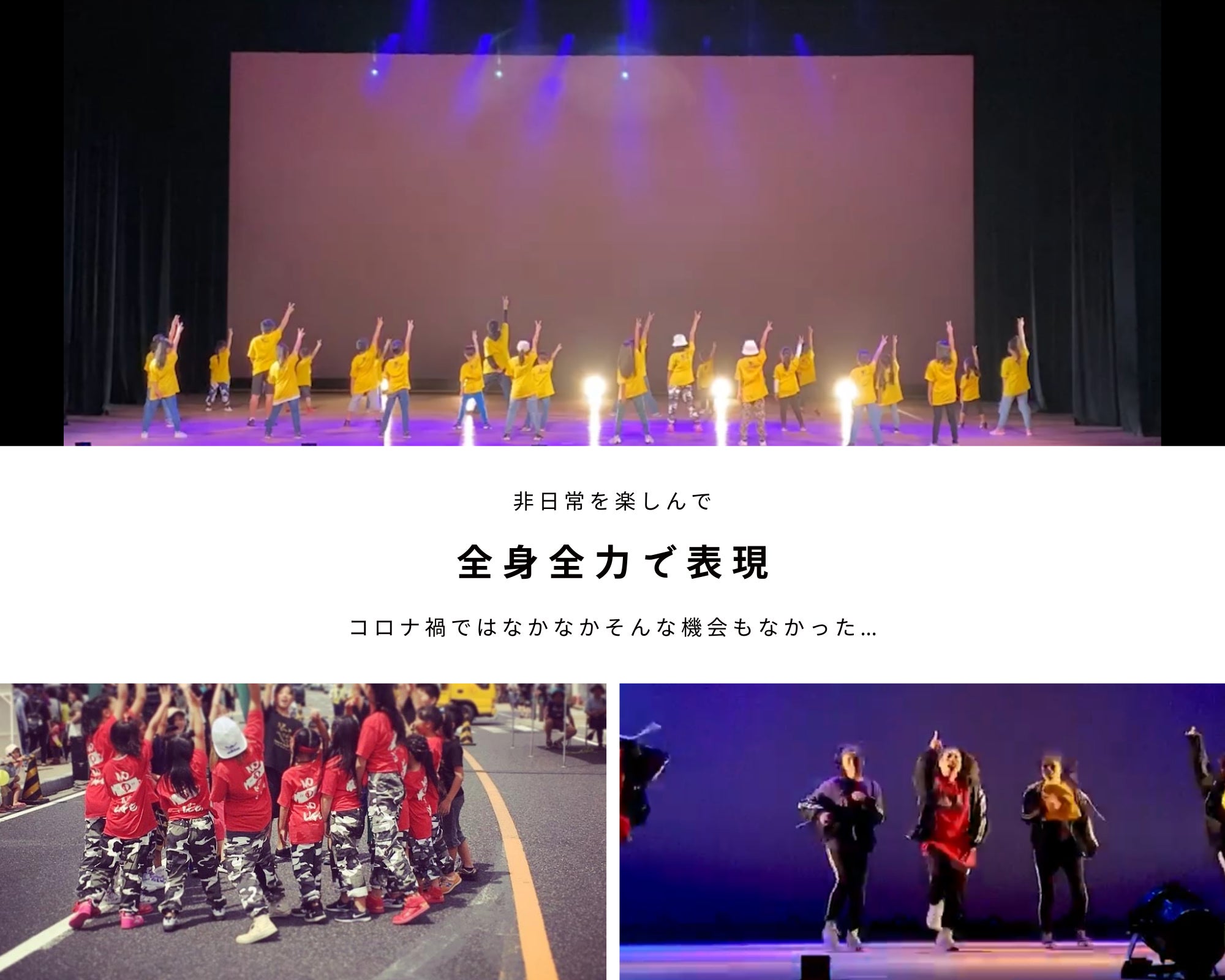 もちろんステージに立てばみんな全力で楽しみ、パフォーマンスします。地域のお祭りやイベント出演はもちろんのこと大きなステージでプロ使用の照明を浴びての緊張の中踊ったりもしました。
