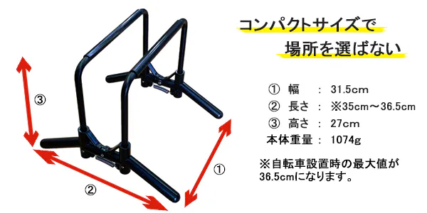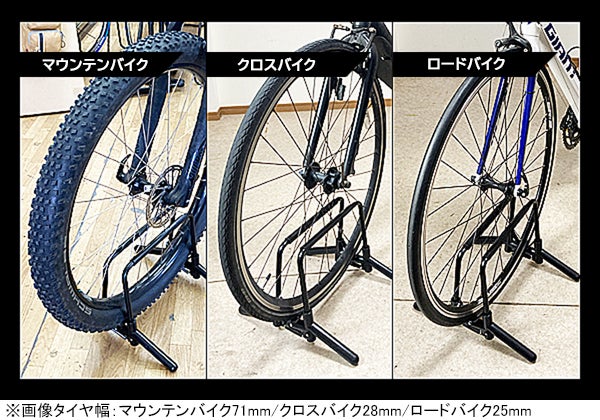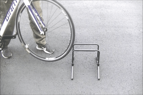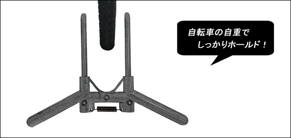 A. はい、車輪を載せるだけでフレームが車輪をはさみこみ、自転車を自立させる仕組みとなっています。安定性を高めるため前後輪が一直線になる様に自転車を置いてください(前輪で固定する場合)。