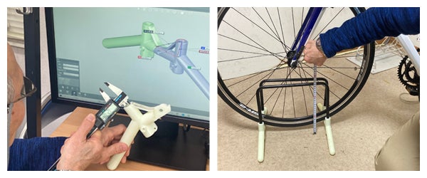 タイヤをはさみ込むタイプのスタンドは、既に2016年頃にはイタリア製のものが存在していましたが、「価格が高く組立が難しい」という欠点がありました。これらを解決するため、何度も構造や材料を変え試作品を作り、ついにオリジナルのスタンドを完成しました。(特許申請中)