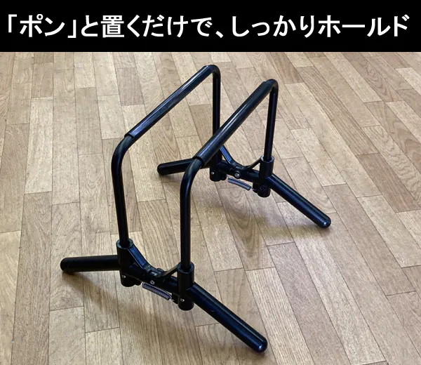 車輪を置くだけでホールド、引き上げればリリース!