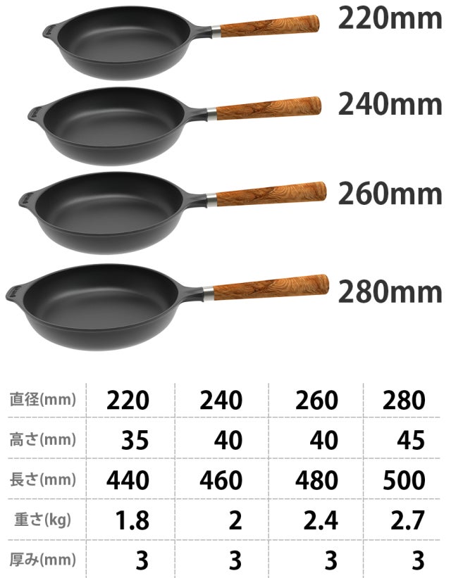 フライパンは4サイズからお選び下さい