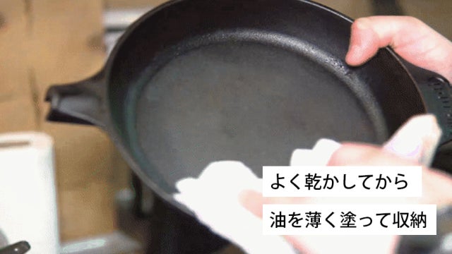 4.調理後はたわしやナイロンブラシ等で洗い、キッチンタオルなどで水分をふき取るか、調理器具で加熱し乾かした後、食品用油を塗って保管してください。