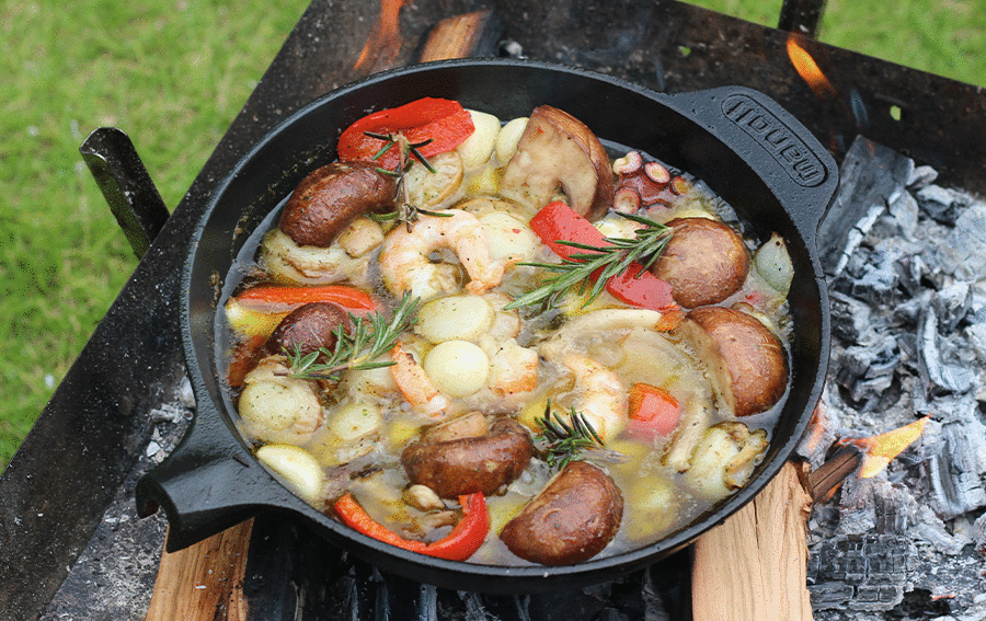 普段使いはもちろん、焚火でも調理が可能ですので、キャンプで大活躍するフライパンです。