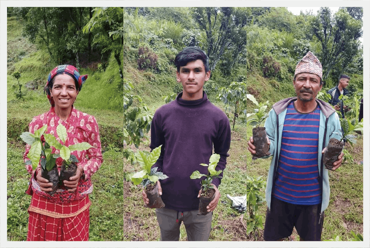 今回のリターンは、ネパール カスキ郡にあるハルパン村(標高1,200m)で育てているコーヒーの苗を購入し、自分の名前が付いたコーヒーの木を植えることができます。「植樹」を通して、地球温暖化の防止に貢献しながら、コーヒーの生産から消費までのサイクルを可視化させ、新たなバリューチェーンの創出を目指しています。