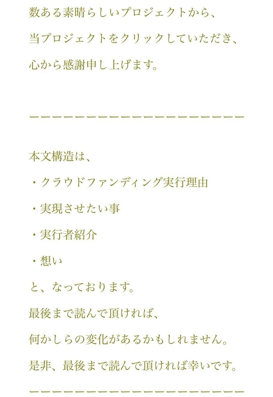 本プロジェクトはAll-or-Nothing方式で実施します。プロジェクト期間内に目標金額に達成しなかった場合は、支援の申し込みはキャンセルされ、全額返金されます。