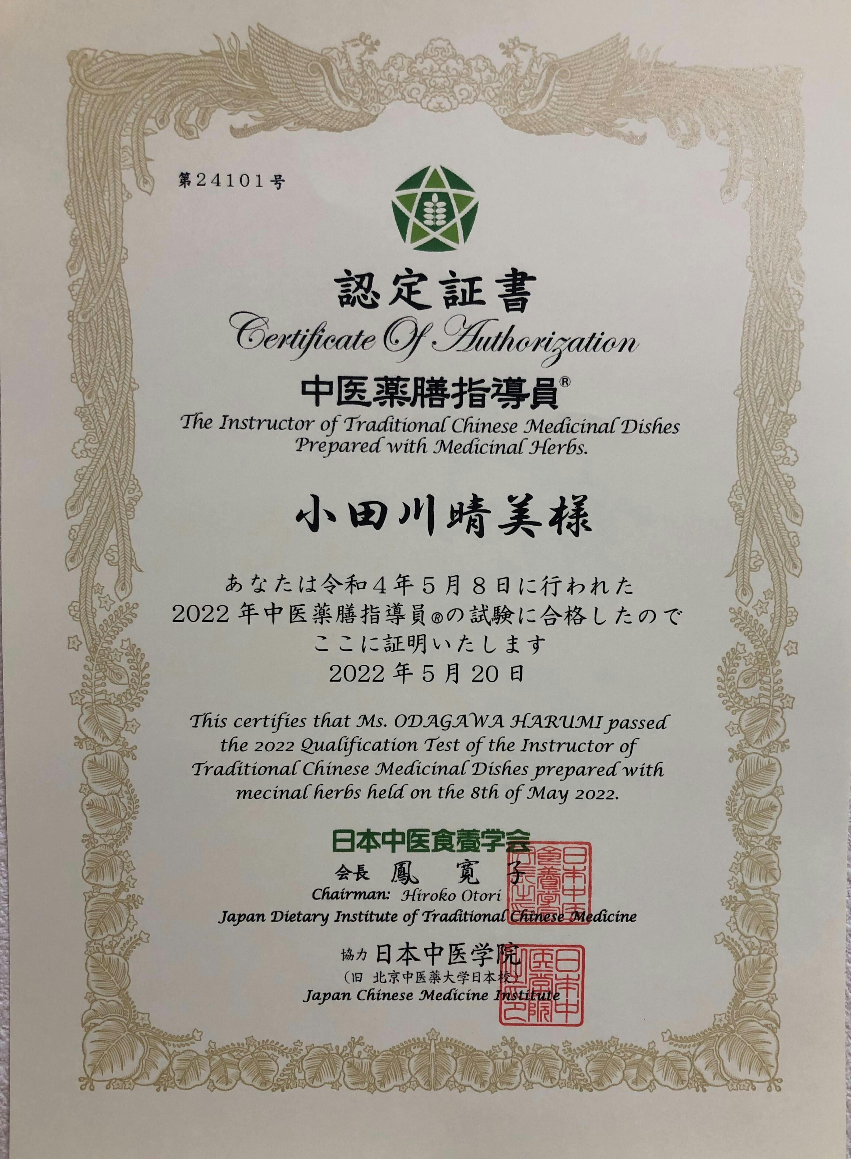 中医薬膳指導員の認定をいただいたいま、大きく羽ばたける!