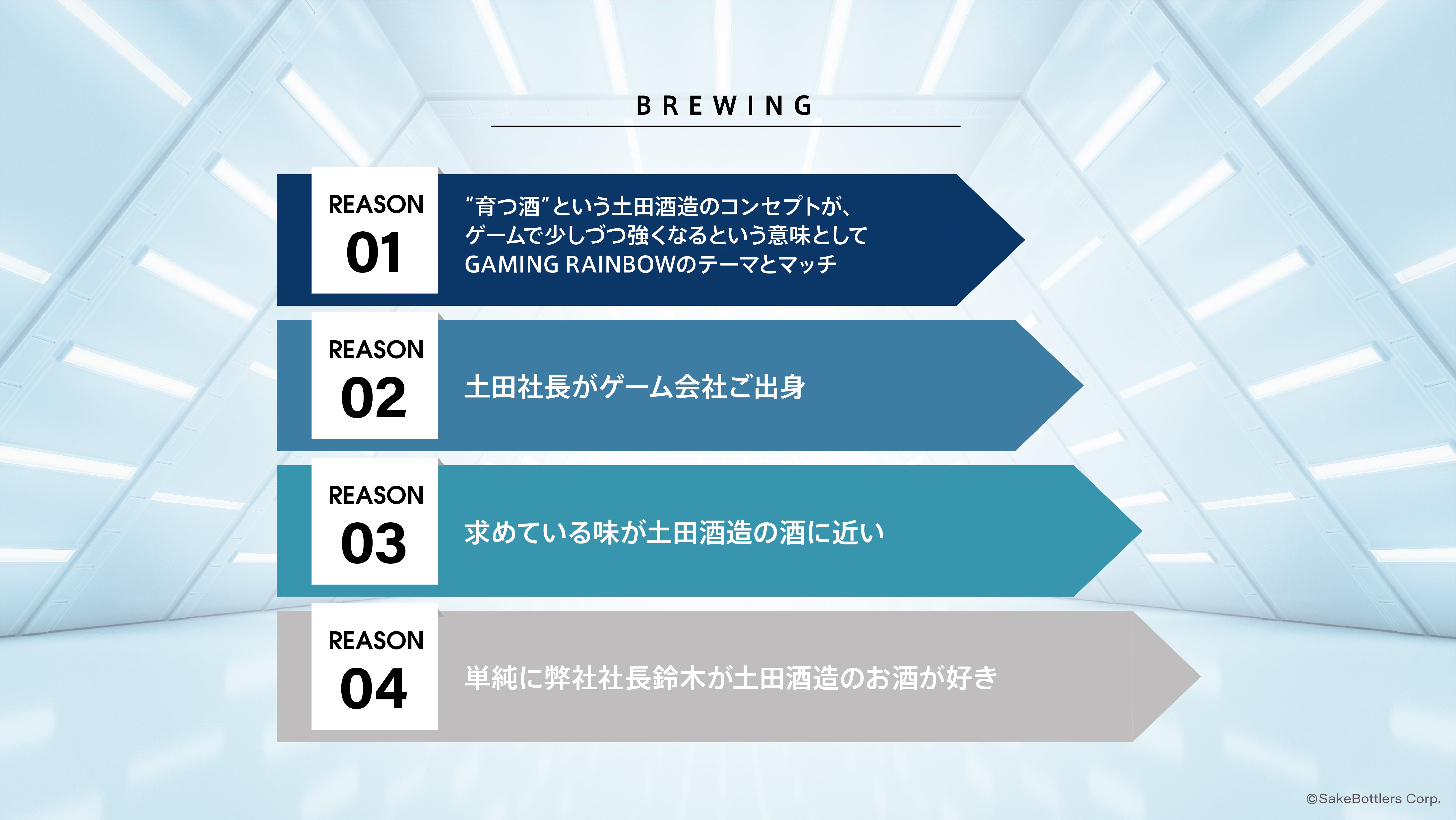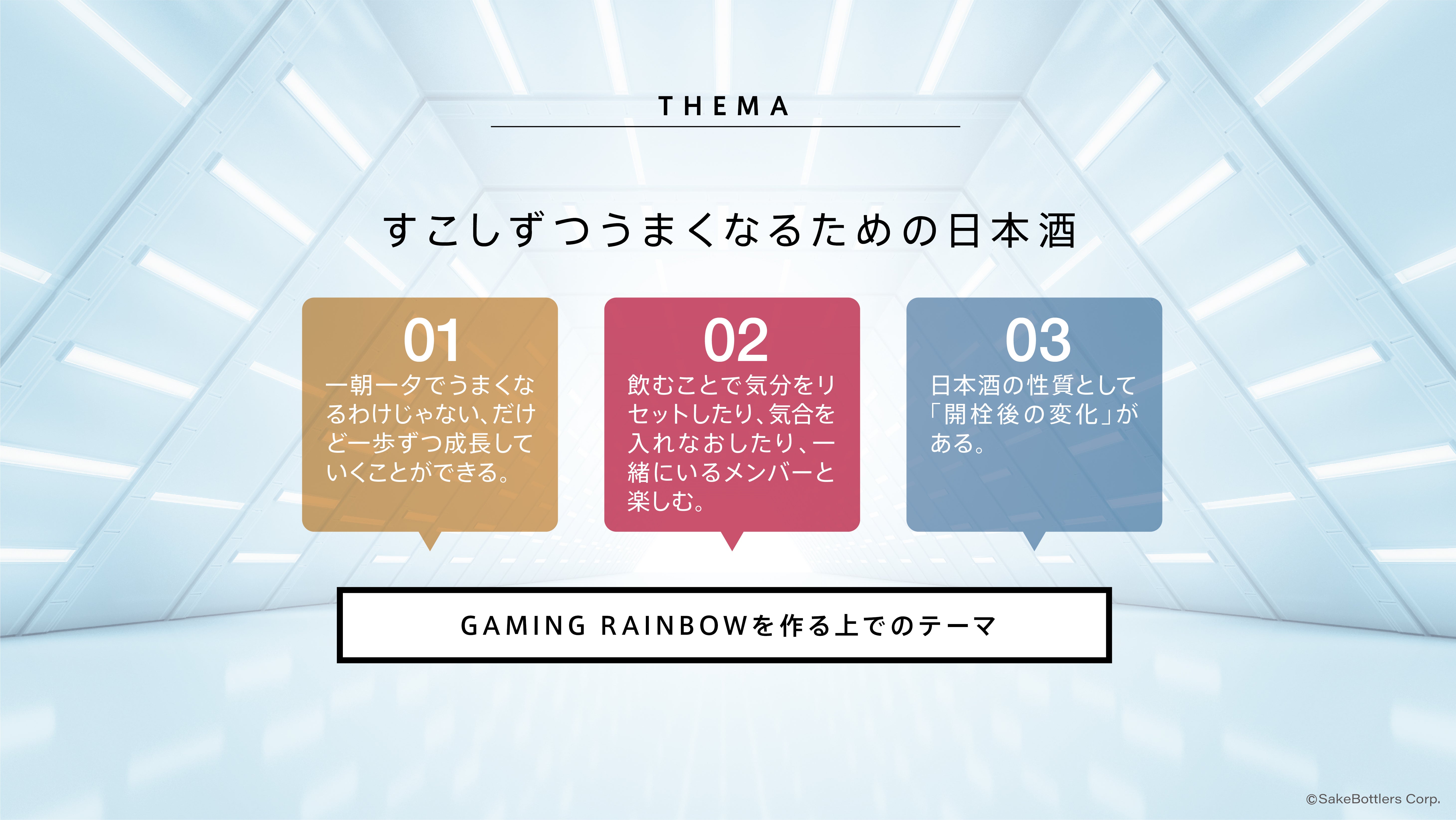 ①土田酒造の育つ酒というコンセプトが、ゲームで少しづつ強くなるという意味としてGAMING RAINBOWのテーマとマッチしている