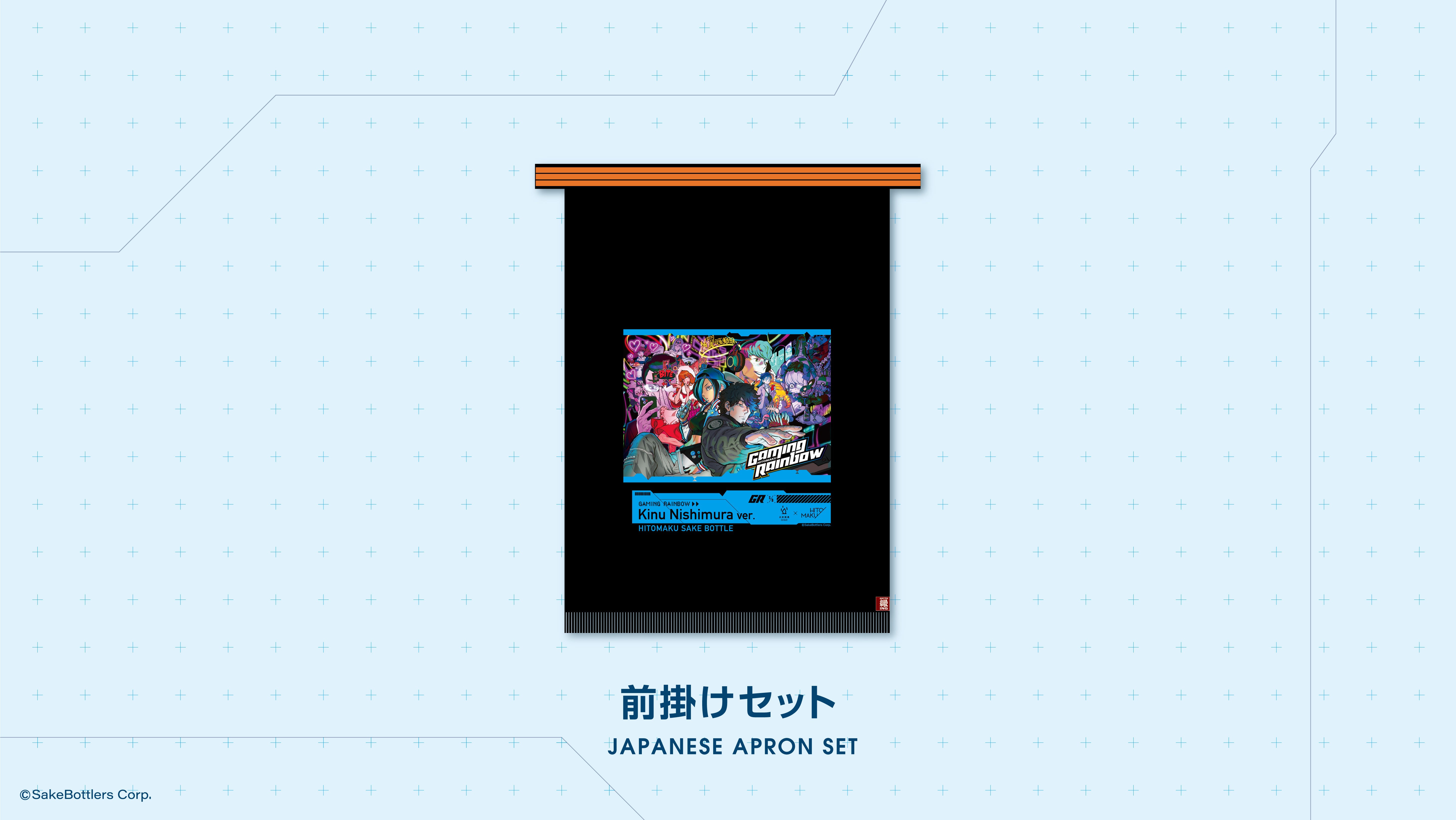 西村キヌ氏、Mika Pikazo氏、土田&HITOMAKUコラボ版の前掛けです。日本酒ならではのグッズかと思います。前掛けメーカーにこんなカッコイイデザインの前掛けは見たことがない、とのコメントをいただきました。