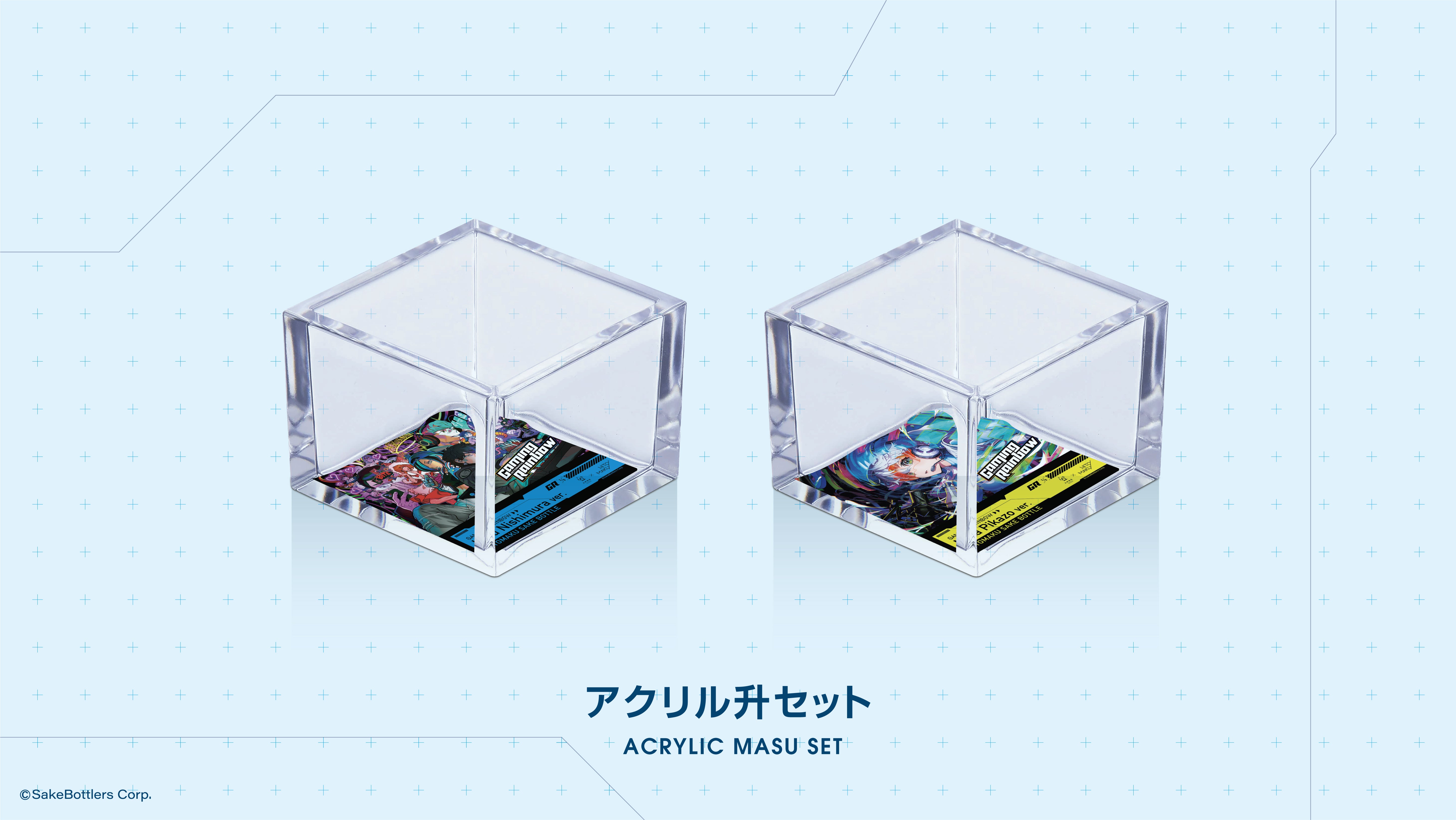 西村キヌ氏、Mika Pikazo氏のイラストのアクリル升のセットです。