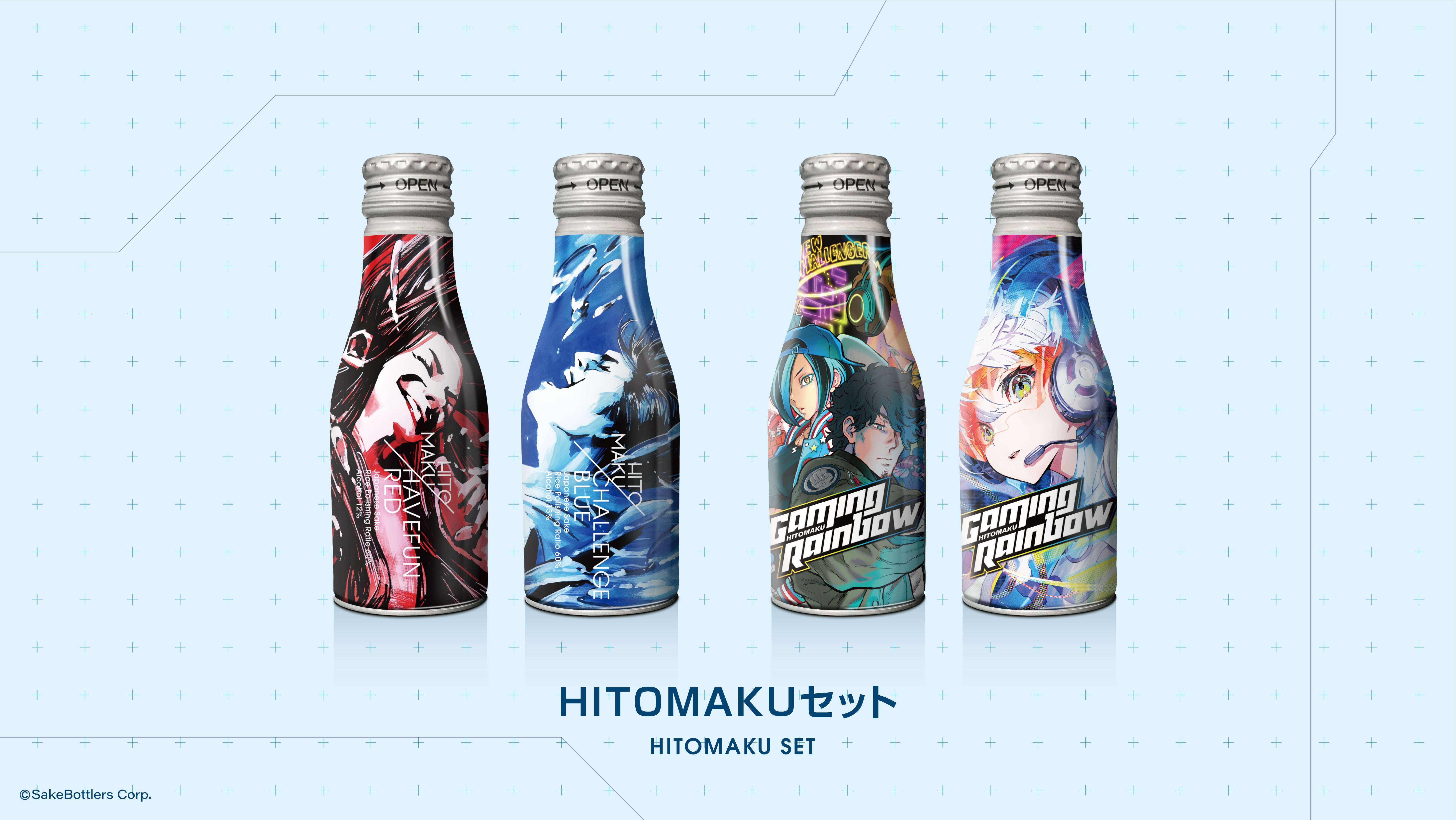 HITOMAKU第1弾のCHALLENGE BLUE、HAVEFUN REDとGAMING RAINBOWのセットです。すべて日本酒醸造の蔵元が違いますので、多彩な味を楽しんでいただけます。