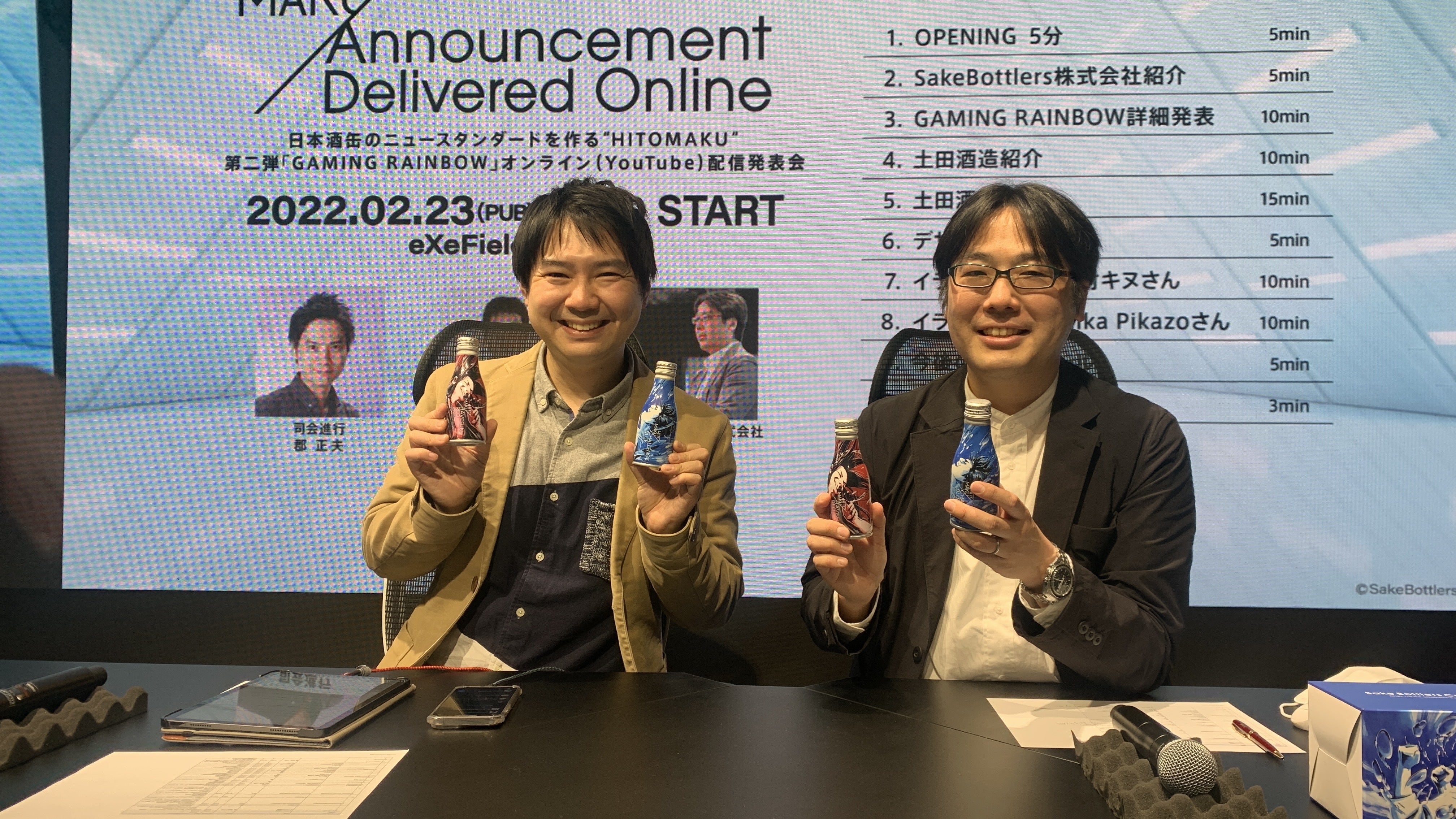 現在はオンラインが主流、かつ、コロナ禍によりゲームセンターや家に集まってゲームをするということがやや困難な状況になっています。そんななか、オンラインでも同じお酒を飲んでいたり、ほろ酔いで配信をみたり、そしてまたみんなが集まって飲みながらゲームができることを期待して、ゲーム中に飲む日本酒を企画しました。