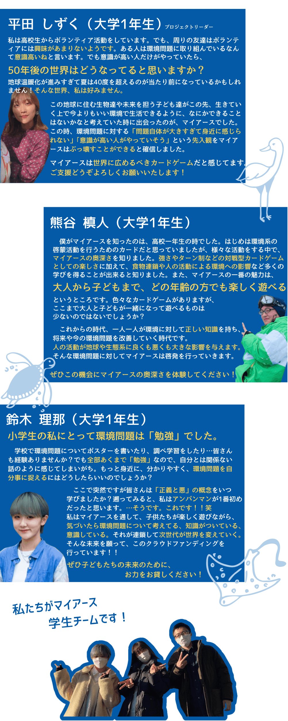 「勉強」ではなく、「遊び」から地球環境を知り、子どもたちが遊びながら地球の未来を変えていく。世界を変えていく。今回のクラウドファンディングは、My Earthが世界へ羽ばたく第1歩と考えています。