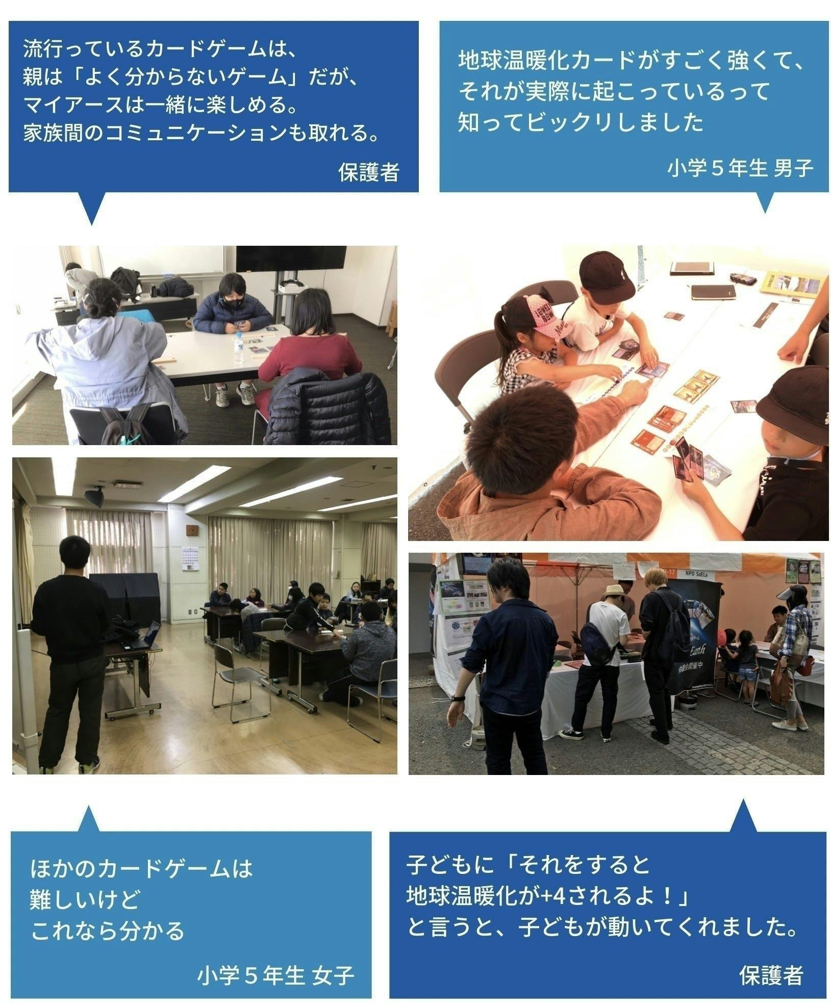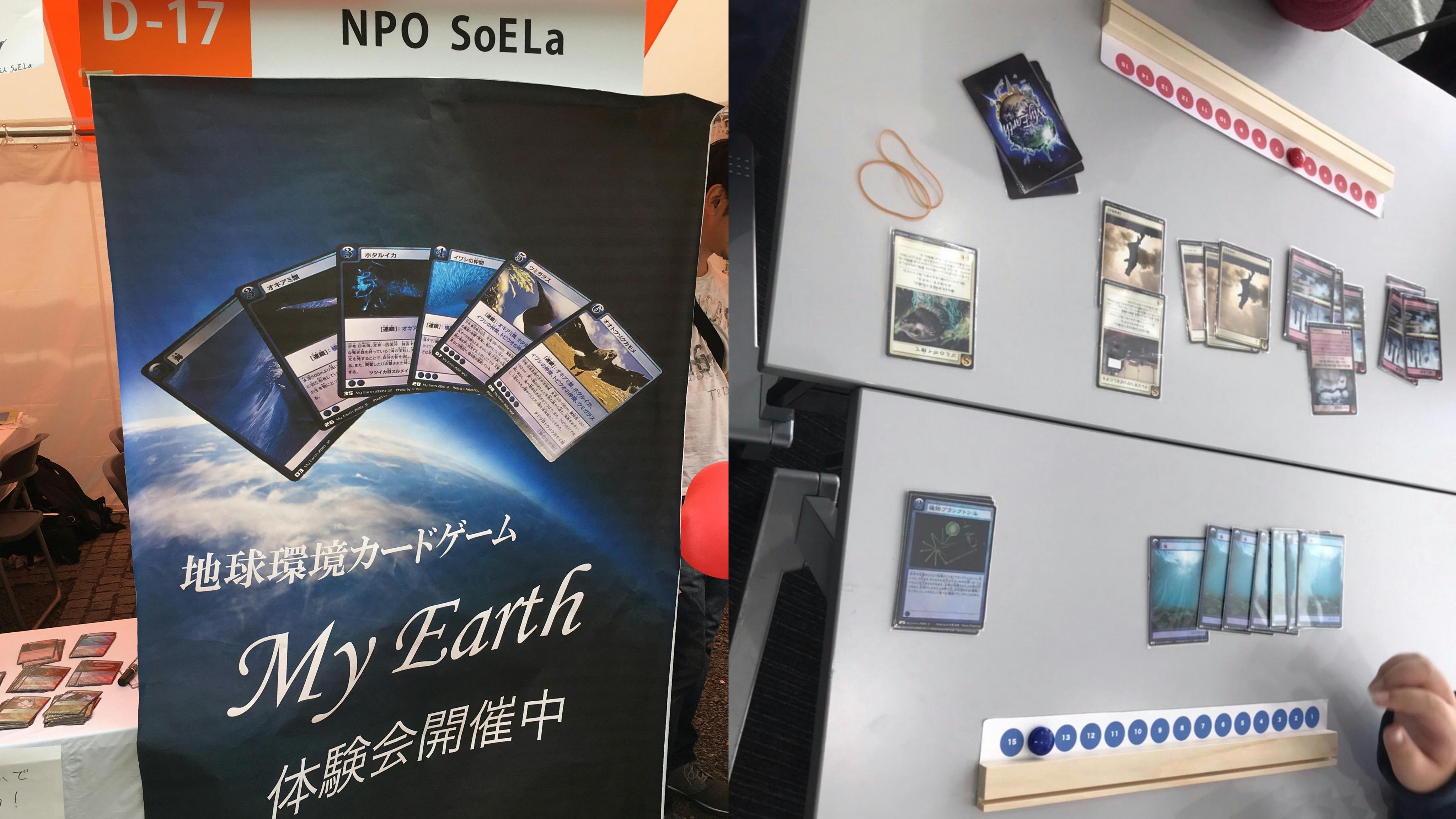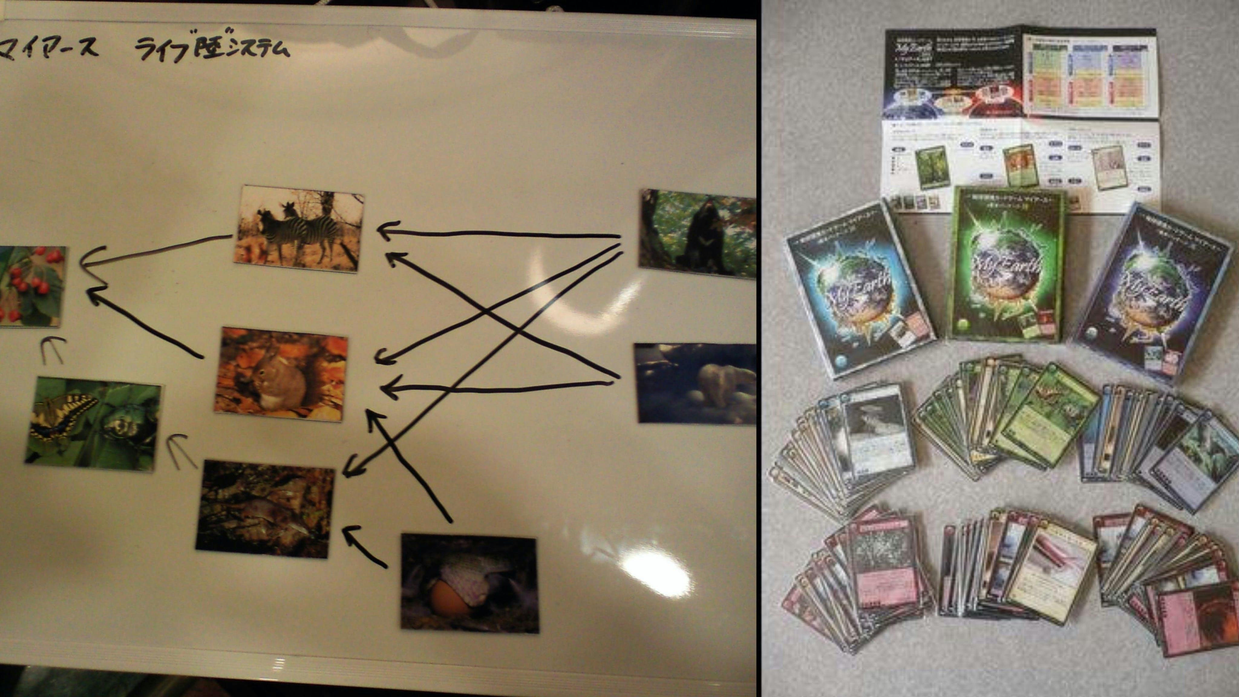 子ども達が普段親しんでいる対戦型トレーディングカードゲームの手法を活用した遊びながら地球環境が学べるカードゲームです。