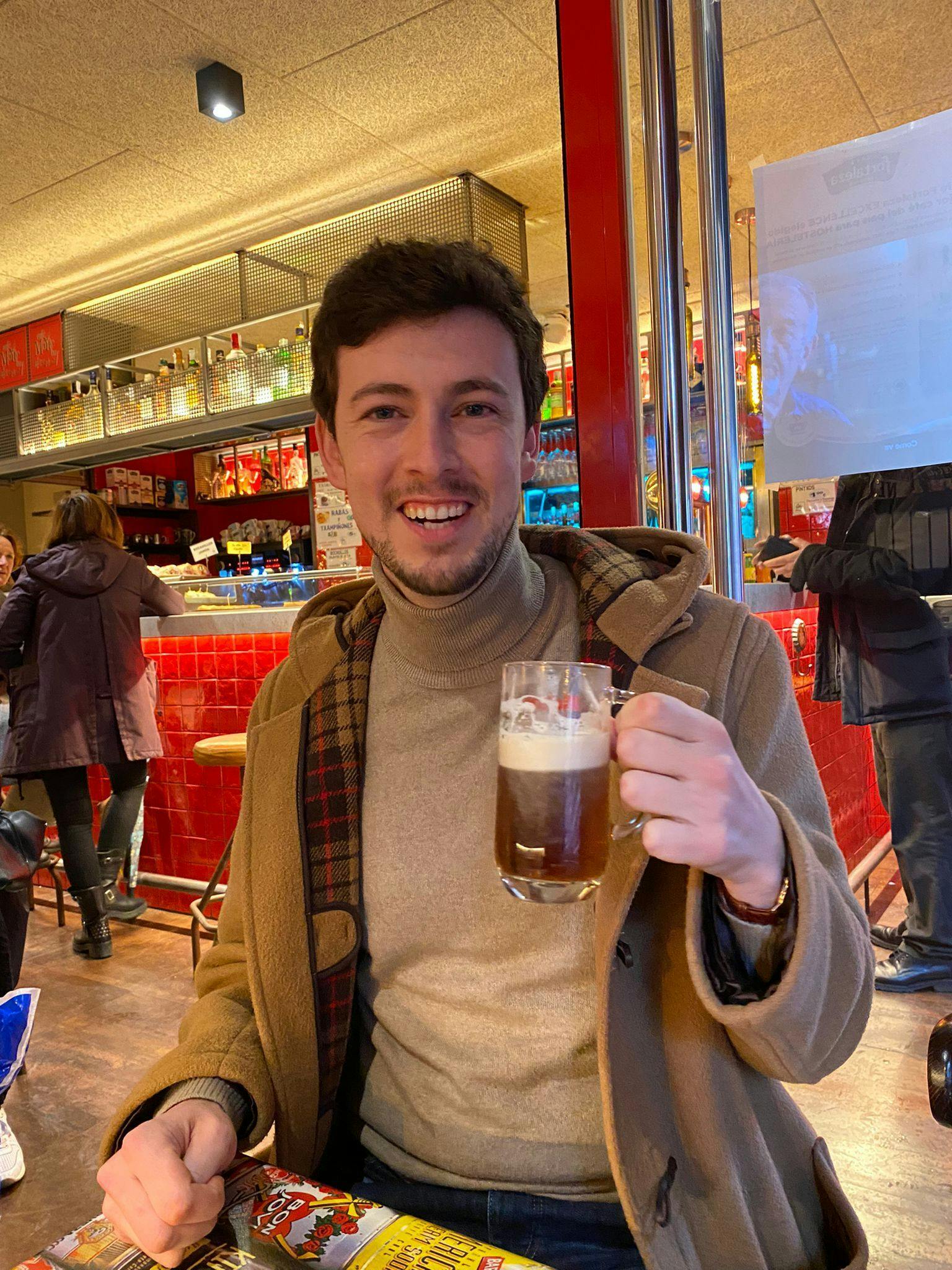 ※写真はスペインらしく昼からムニッチを飲むジョンアンデルさん