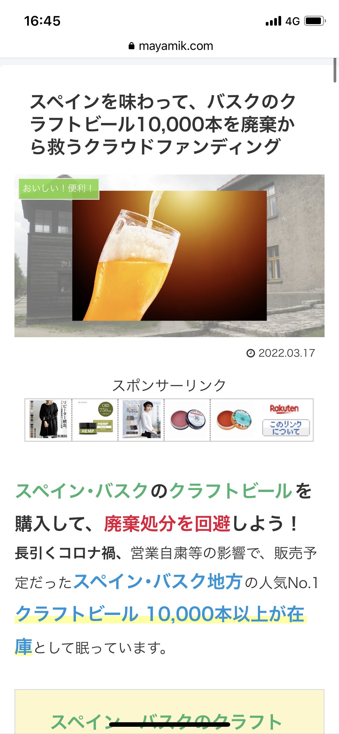 こんにちは!度々失礼します! La Manga Foodsの田中です。皆様のおかげで早くも90%を突破しました!ありがとうございます!!早すぎて動揺してます。。。100%までとは言わず、売り切りまでお付き合いいただけますと幸いです☺(引き続き拡散のご協力よろしくお願いします。m(__)m)クラウドファンディングでの本プロジェクトを、お福わけサロン様で取り上げて頂きましたので、ご報告です。筆者の方は、日頃よりLa Manga Foodsの商品をご愛顧いただいてる方で、今回のプロジェクトもご支援頂いております。感謝カンゲキ雨嵐です。。。スペインを味わって、バスクのクラフトビール10,000本を廃棄から救うクラウドファンディング