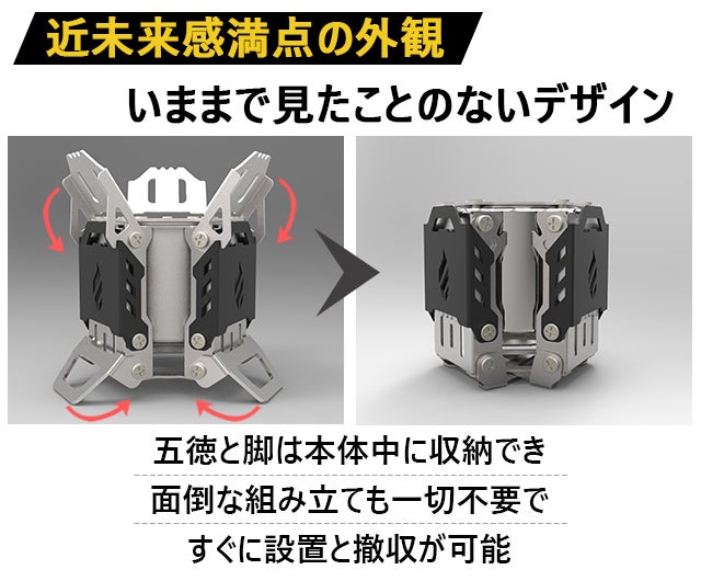 ❶ 次世代のアウトドア体験をお届け!炎を手軽に楽しむ毛細管アルコールストーブ