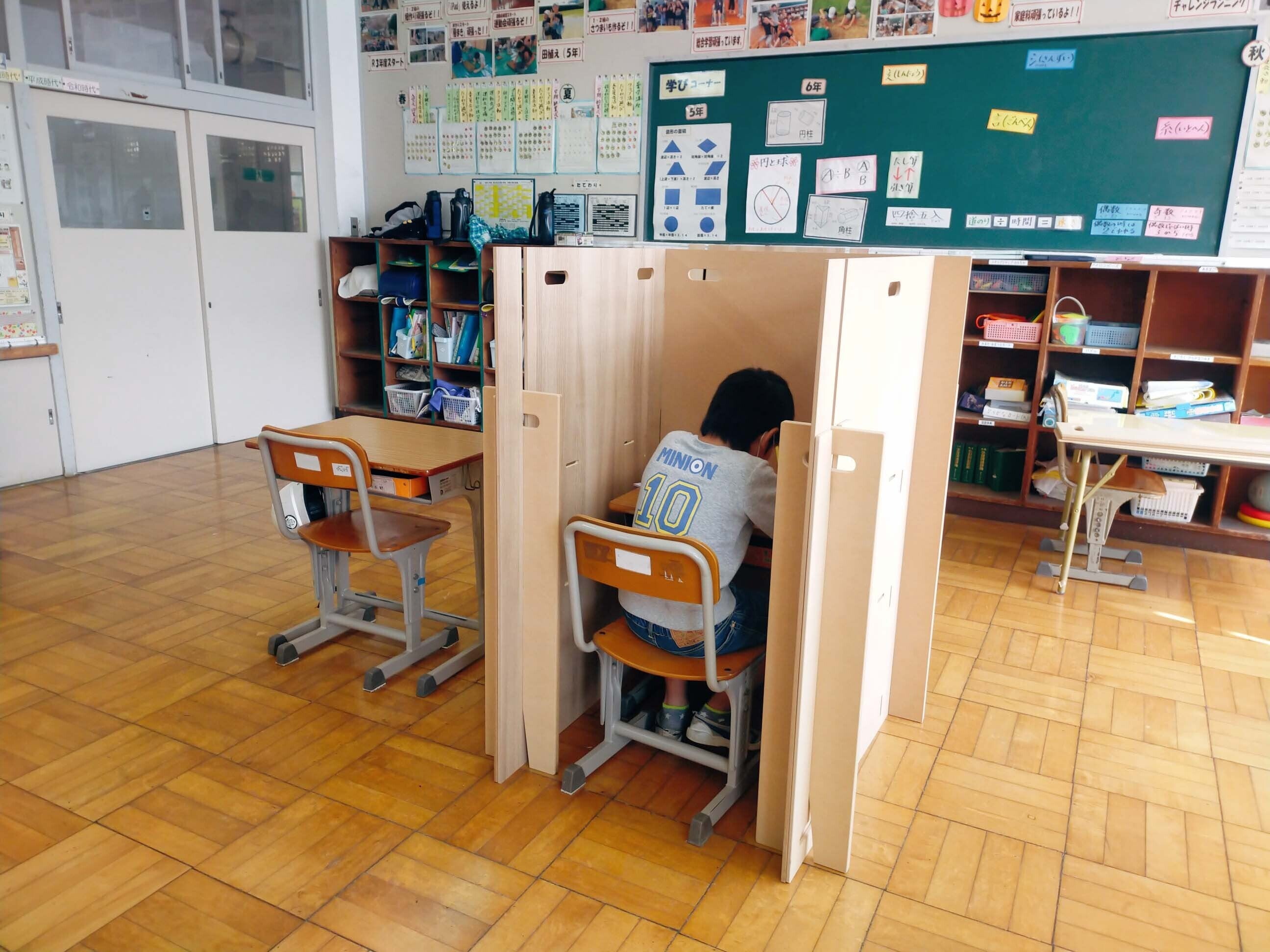 覆われたスペースで気が散りにくく、視線や音が気になりやすい特別支援学級の子供たちにはちょうどいい学習スペースとなりました。