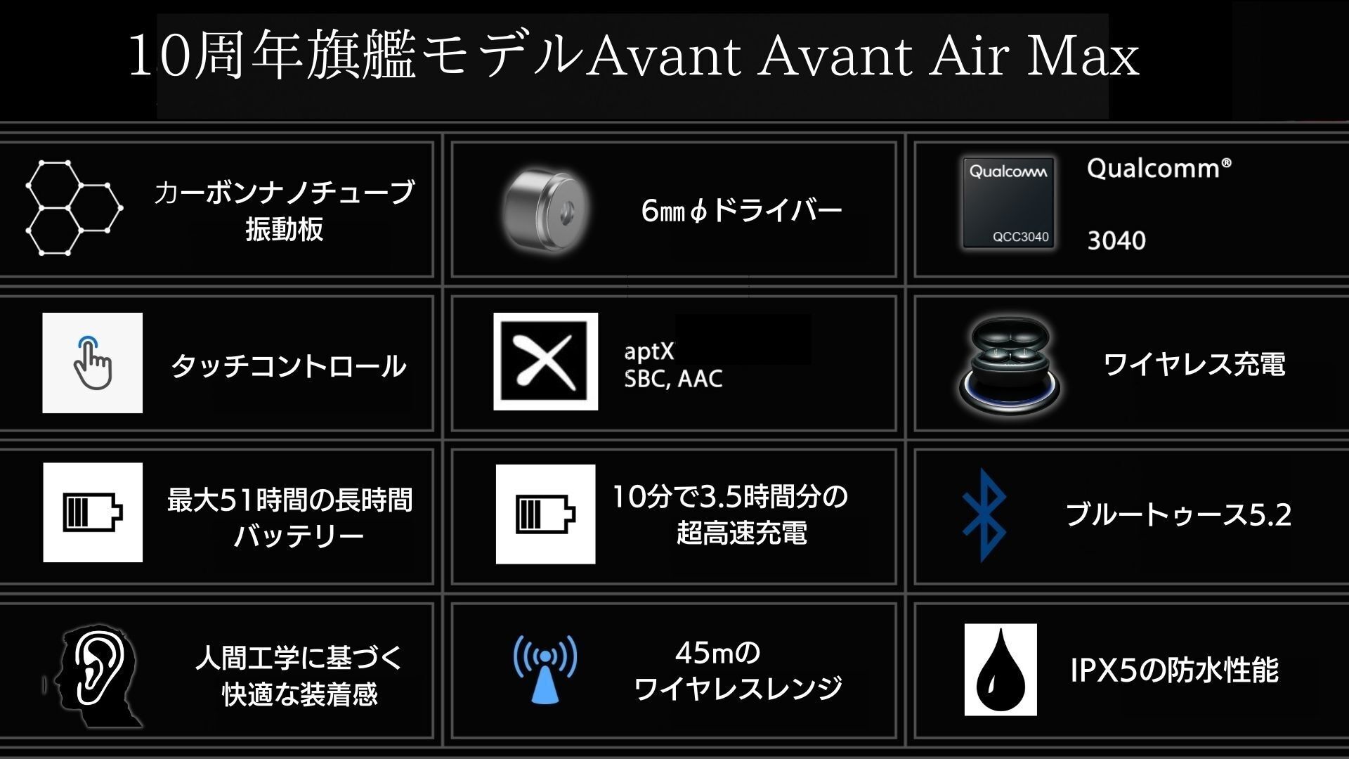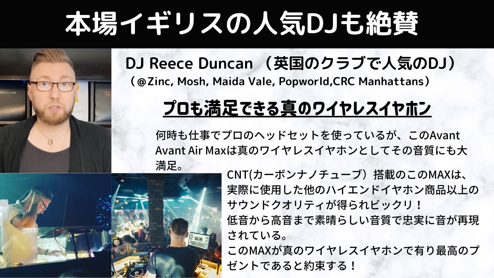 この「Avant Air Max」は現行でイギリスで人気の「Avant Air」の上位機種となります。初めてCNT(カーボンナノチューブ)振動板を採用するとともに、独自に培ってきた絶妙なチューニングを施すことにより、プロのDJも絶賛するほどのサウンドクオリティを実現しました。