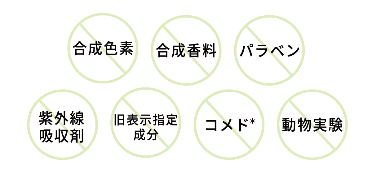 7つのフリーを実現し、サステナビリティに配慮した原料の厳選、植物由来成分の使用など、使用する原料にも細かくこだわっています。
