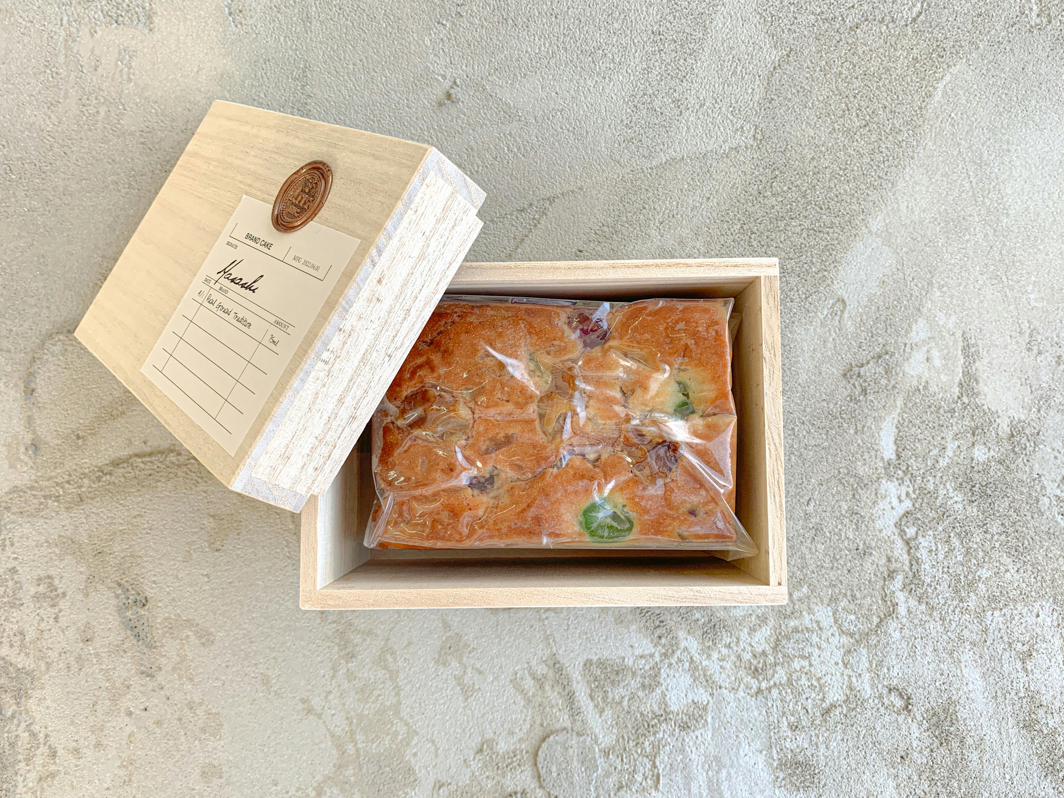 高級な桐箱はそのままにハーフサイズにした お試し用サイズの深熟ブランドケーキです。