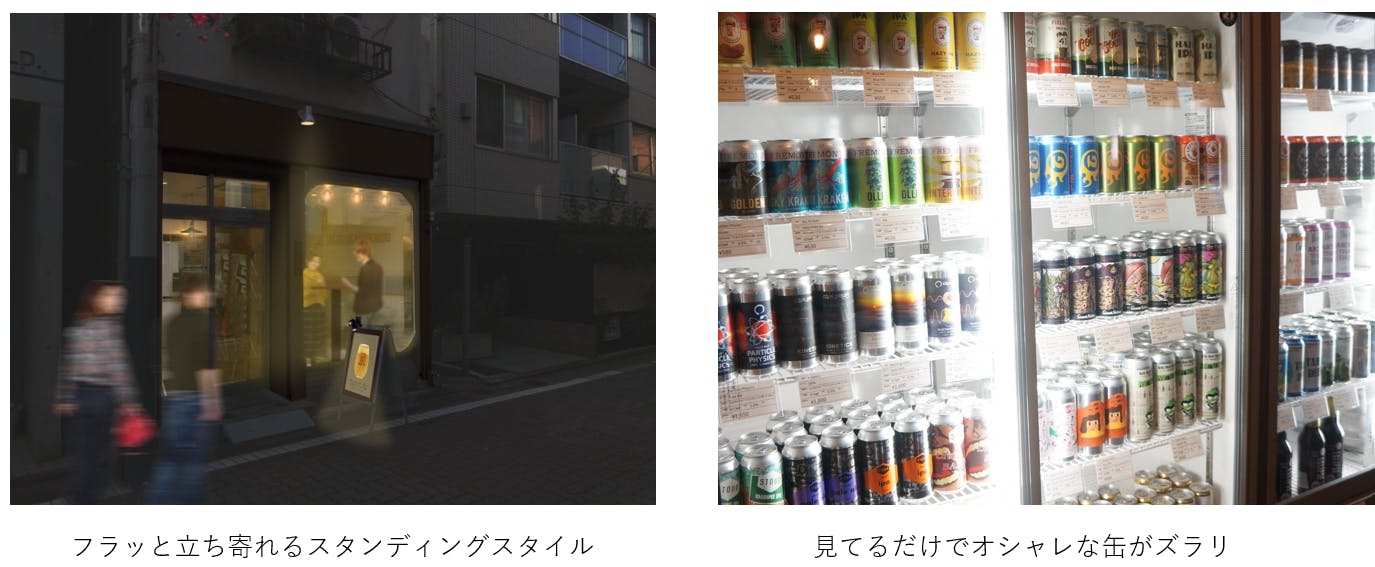 おしゃれな缶やボトルのデザインを目で楽しみながら、どれを飲むかスタッフやお客様同士で相談しながら決めるという文化も作っていきたいと思っています。