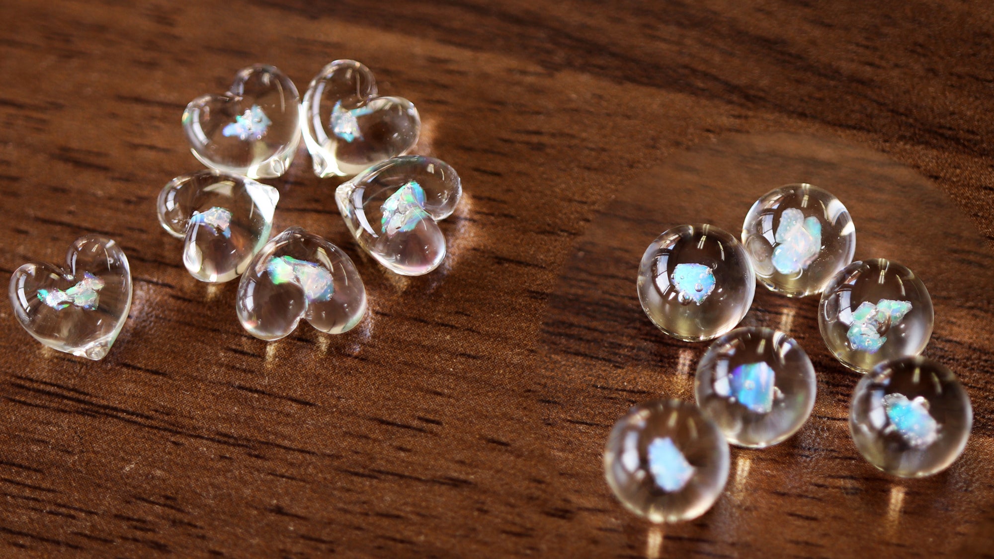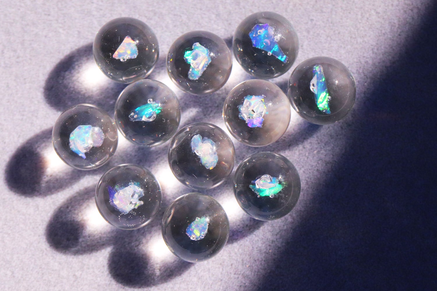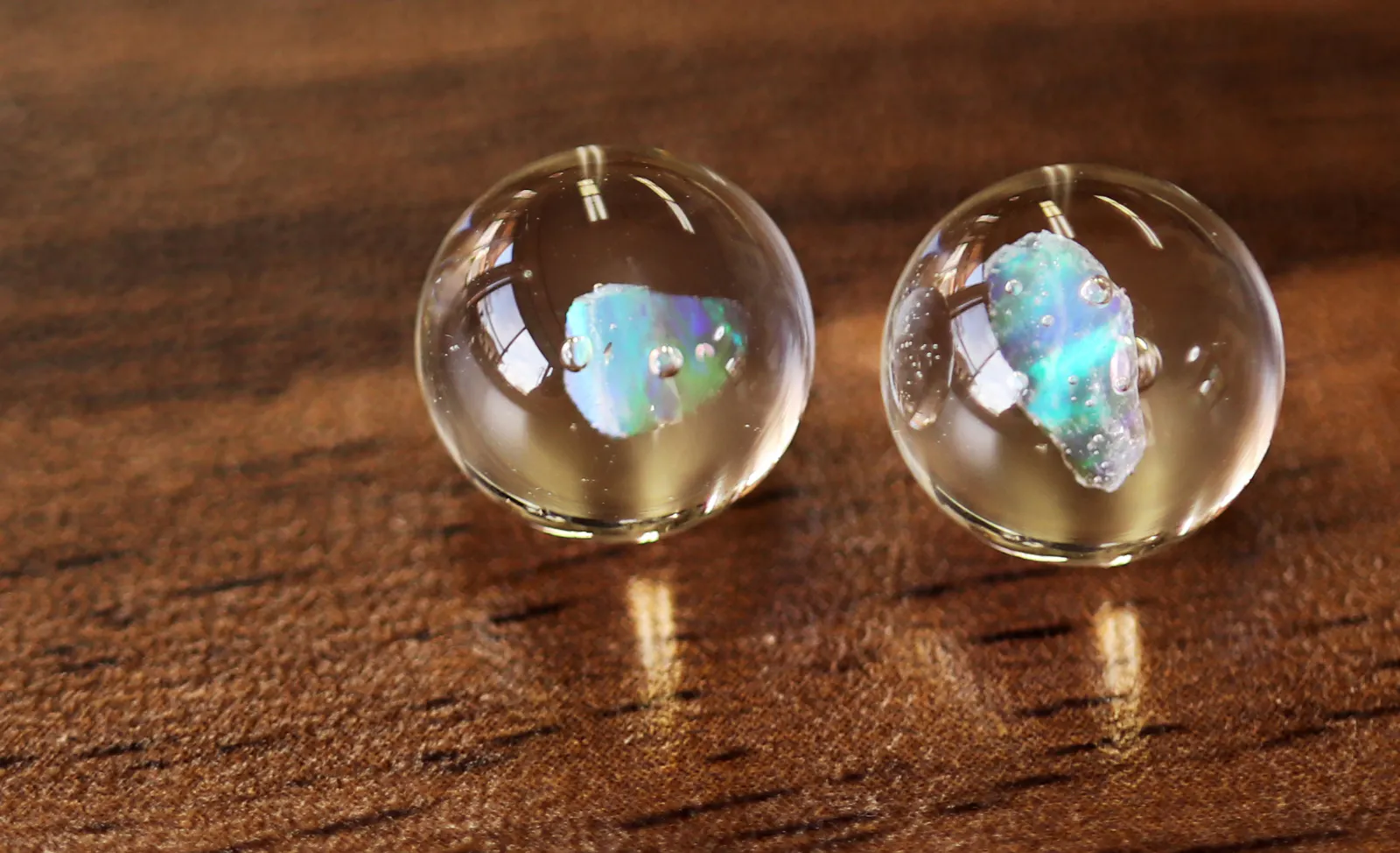 また、天然オパール特有の脆さ(もろさ)を克服しているのでガラスに閉じ込めることができるのです。