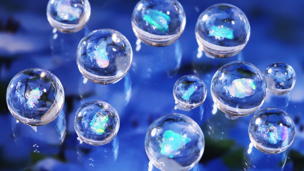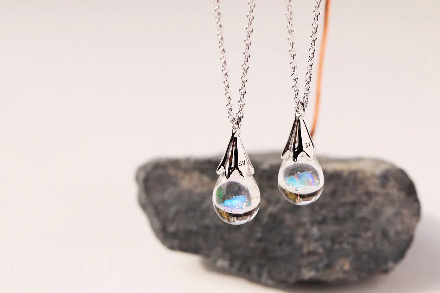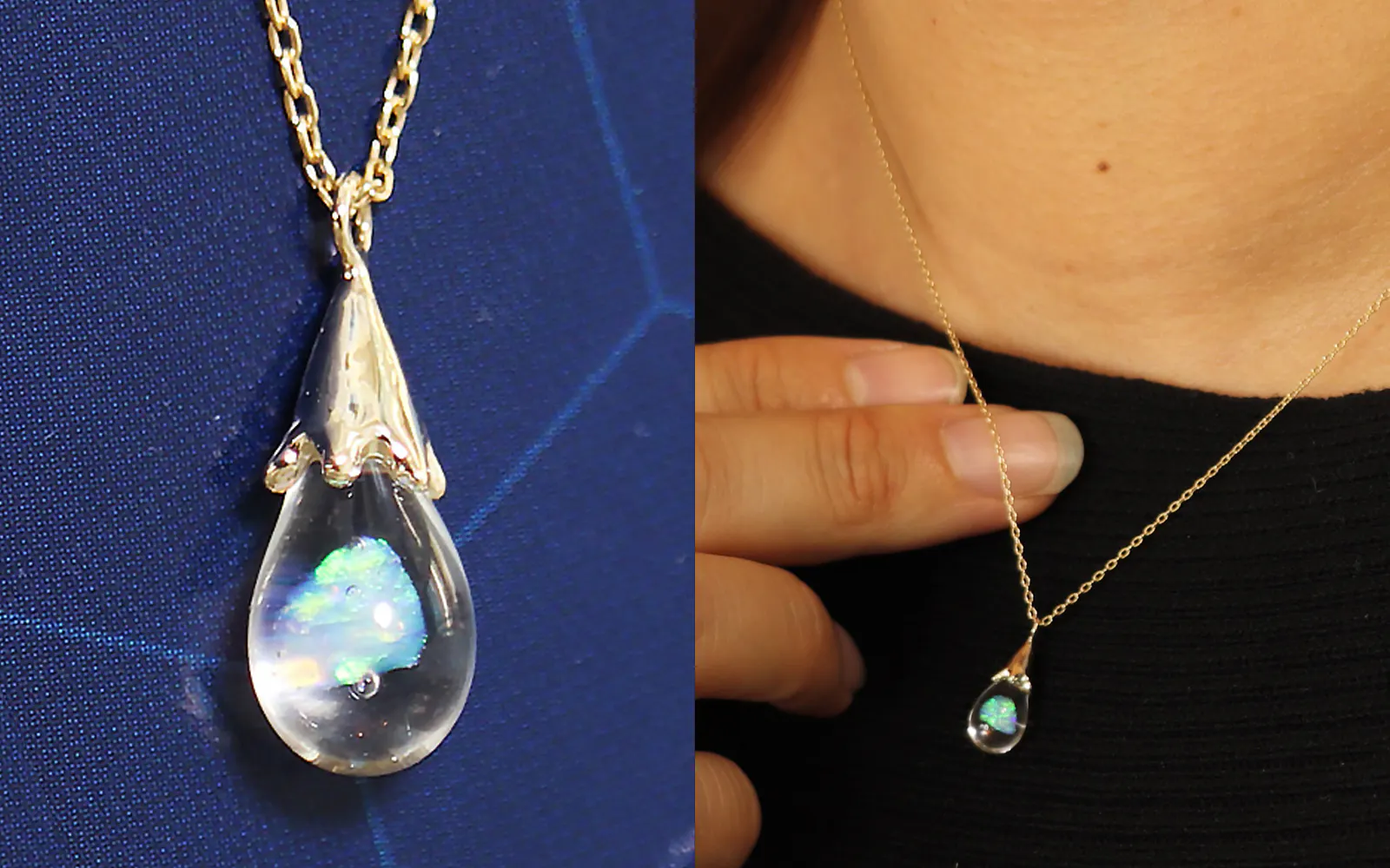 また、天然オパール特有の脆さ(もろさ)を克服しているのでガラスに閉じ込めることができるのです。
