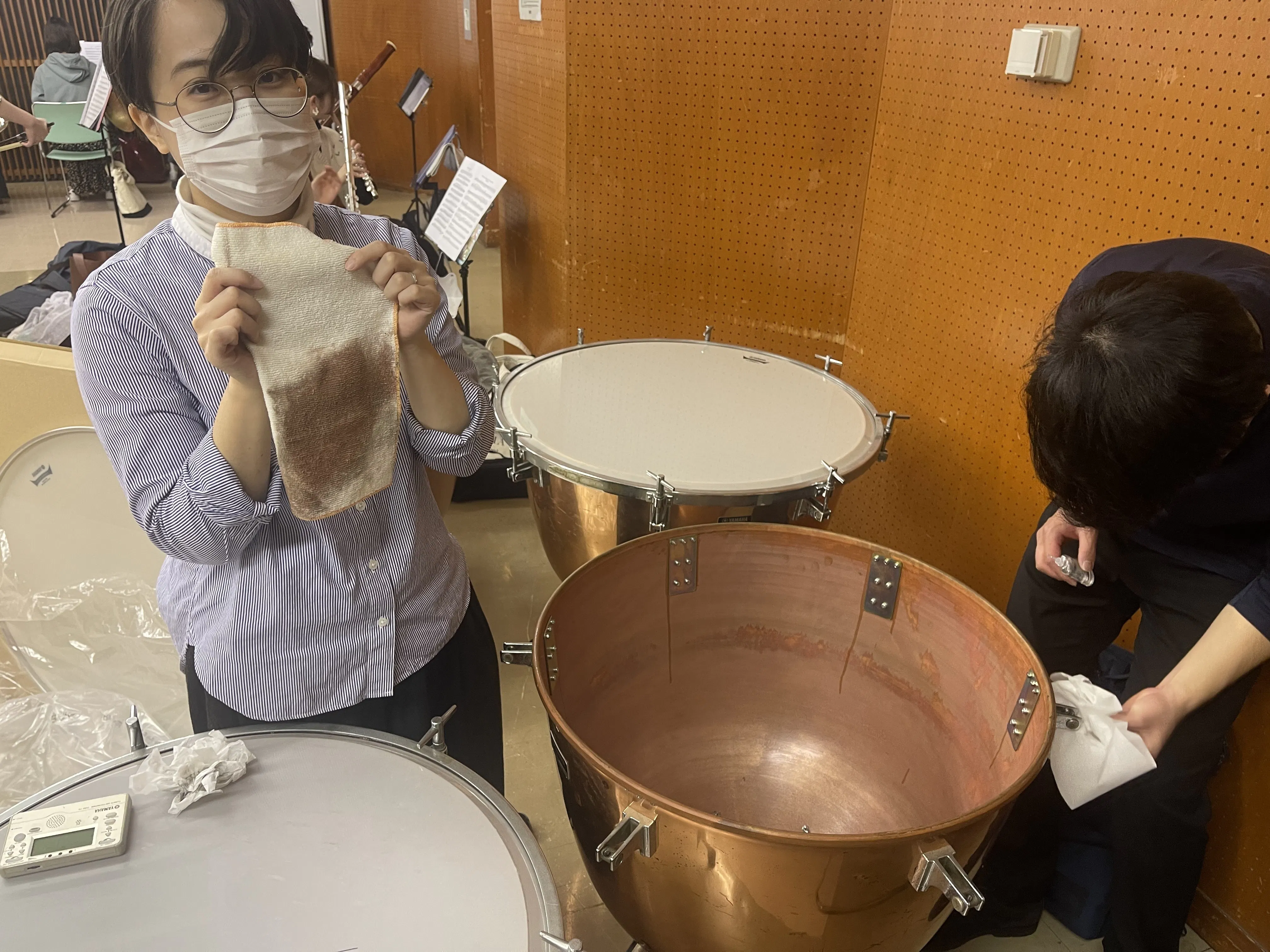 今日は2回目の合奏慣れ練習でした。合奏前に打楽器パートはティンパニのヘッド(皮)の張り替えを行いました◎