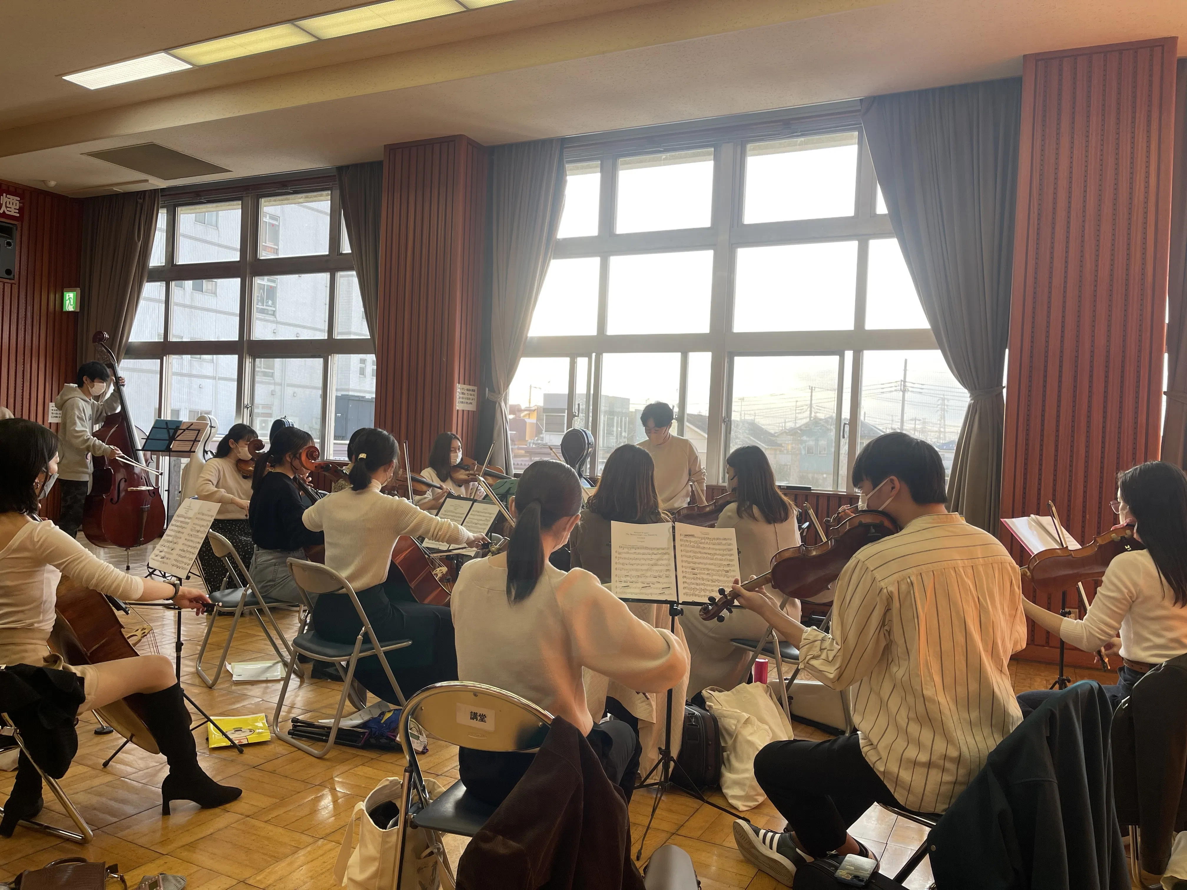 今日の前半は弦楽器、後半は金管・打楽器、明日は木管のセクション練習が行われます。