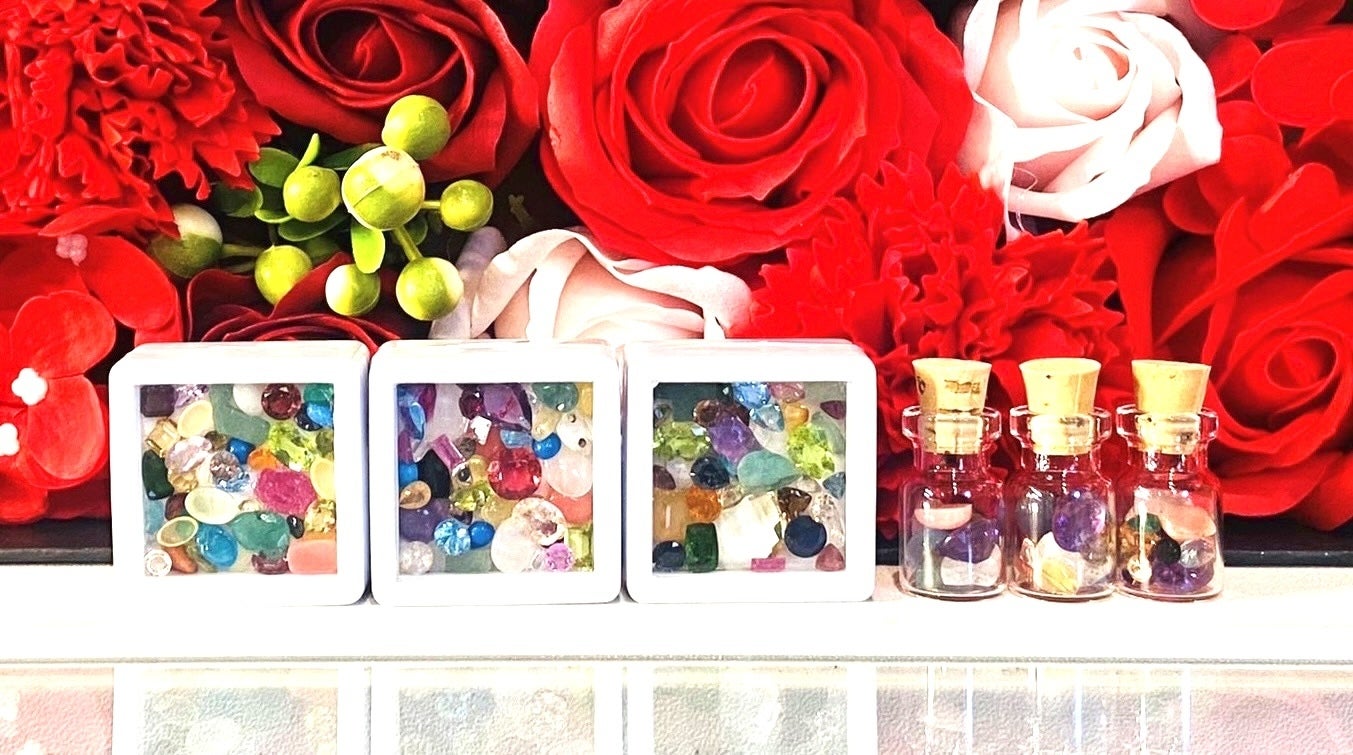 ※縦3㎝×横3㎝のルースケースにたっぷりの宝石達をいれております