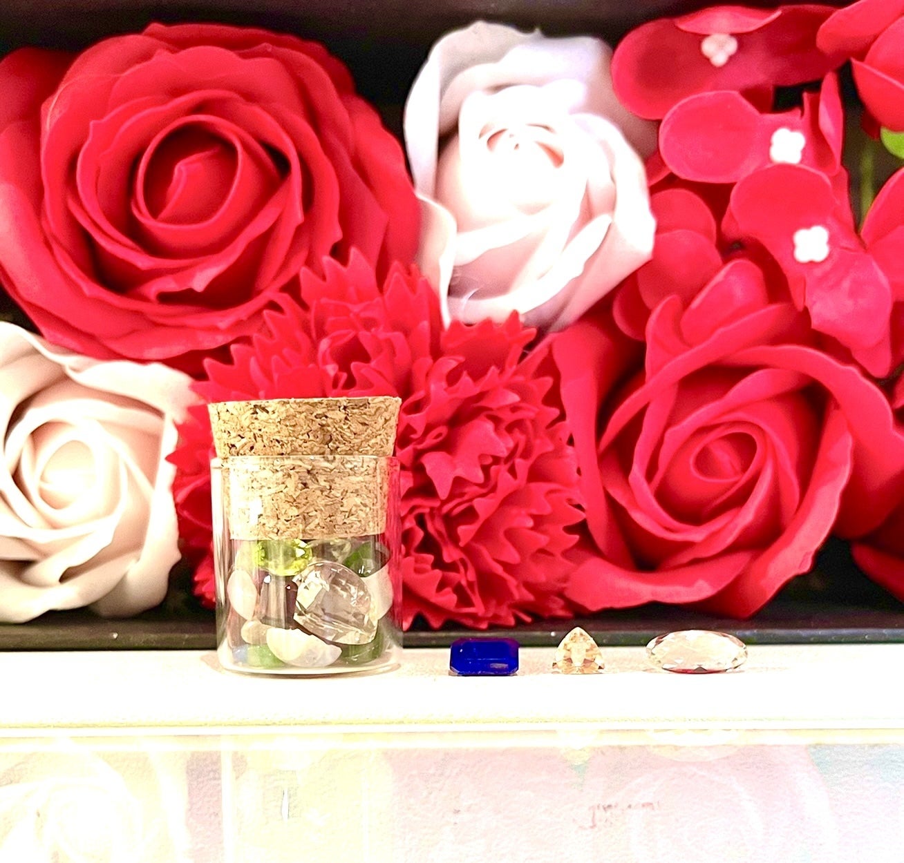 ケース1個+10ct程度天然宝石の入った小瓶1個 定価18,000円 →特別価格6,000円!!・お礼の手紙